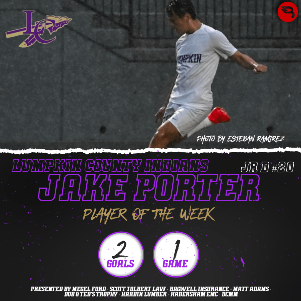 The BLITZ Boys Soccer Players of the Week are Jake Porter (Lumpkin County) and Jake Wehrstein (Tallulah Falls). Porter took 3,448 of the 4,876 votes to win the Fan Vote. Wehrstein was the BLITZ Pick.