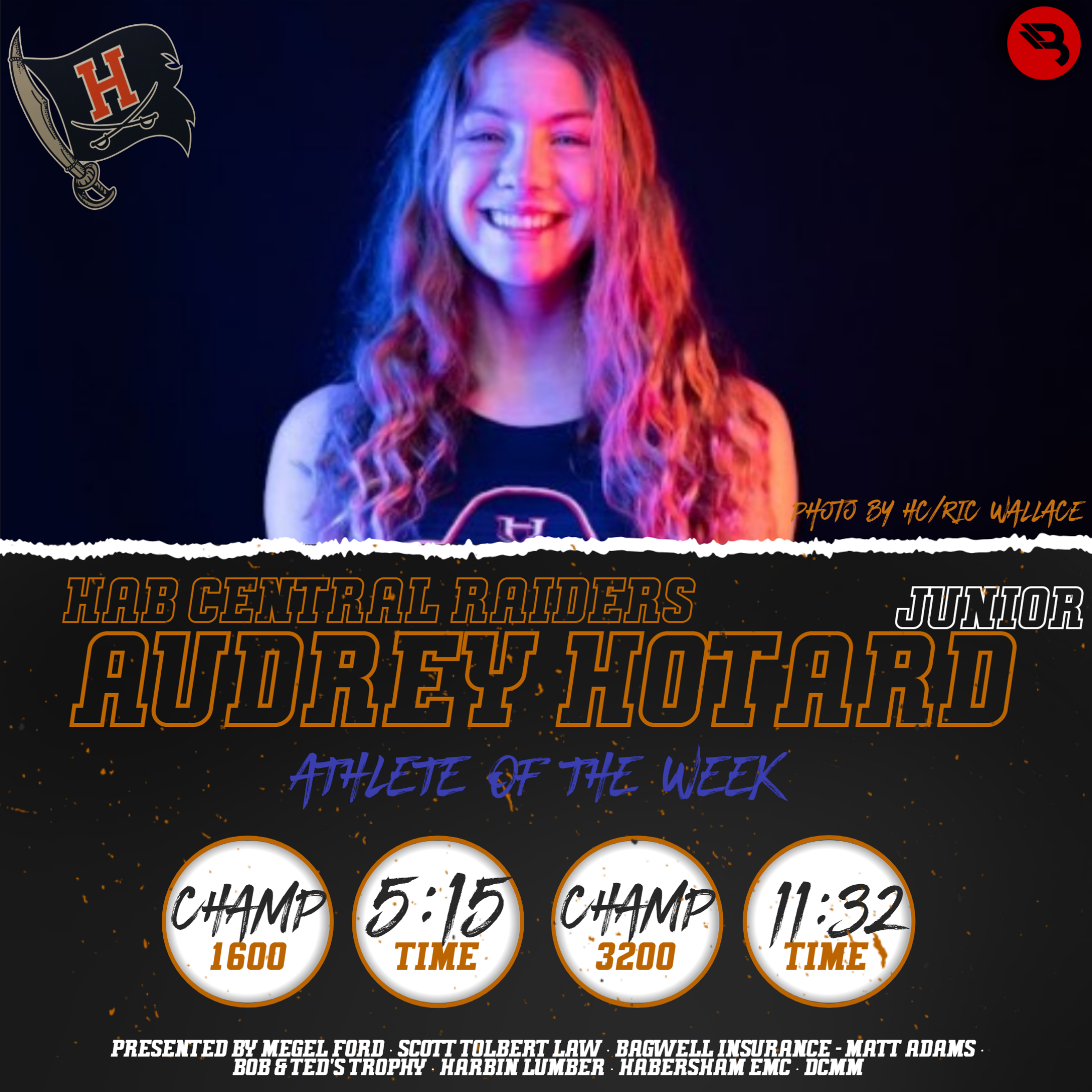 Audrey Hotard is adding to her career haul. The junior distance star earned another pair of region titles, taking the 1600 (5:15) and the 3200 (11:32), and now has 11 career BLITZ POW awards.