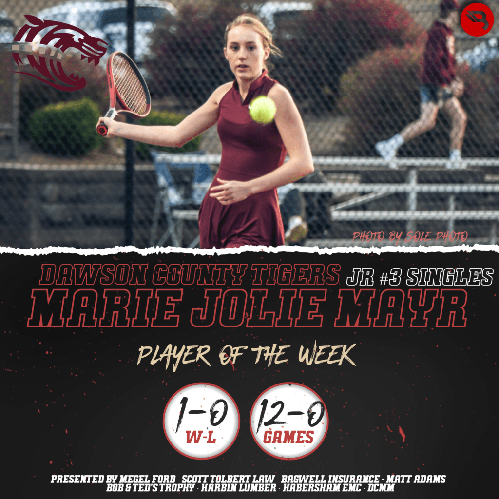 The BLITZ Tennis Players of the Week are Marie Jolie Mayr (Dawson County) and Tanner Davis (Tallulah Falls). Mayr won the Fan Vote with 2,798 of the 5,445 total votes. Davis was the BLITZ Pick.