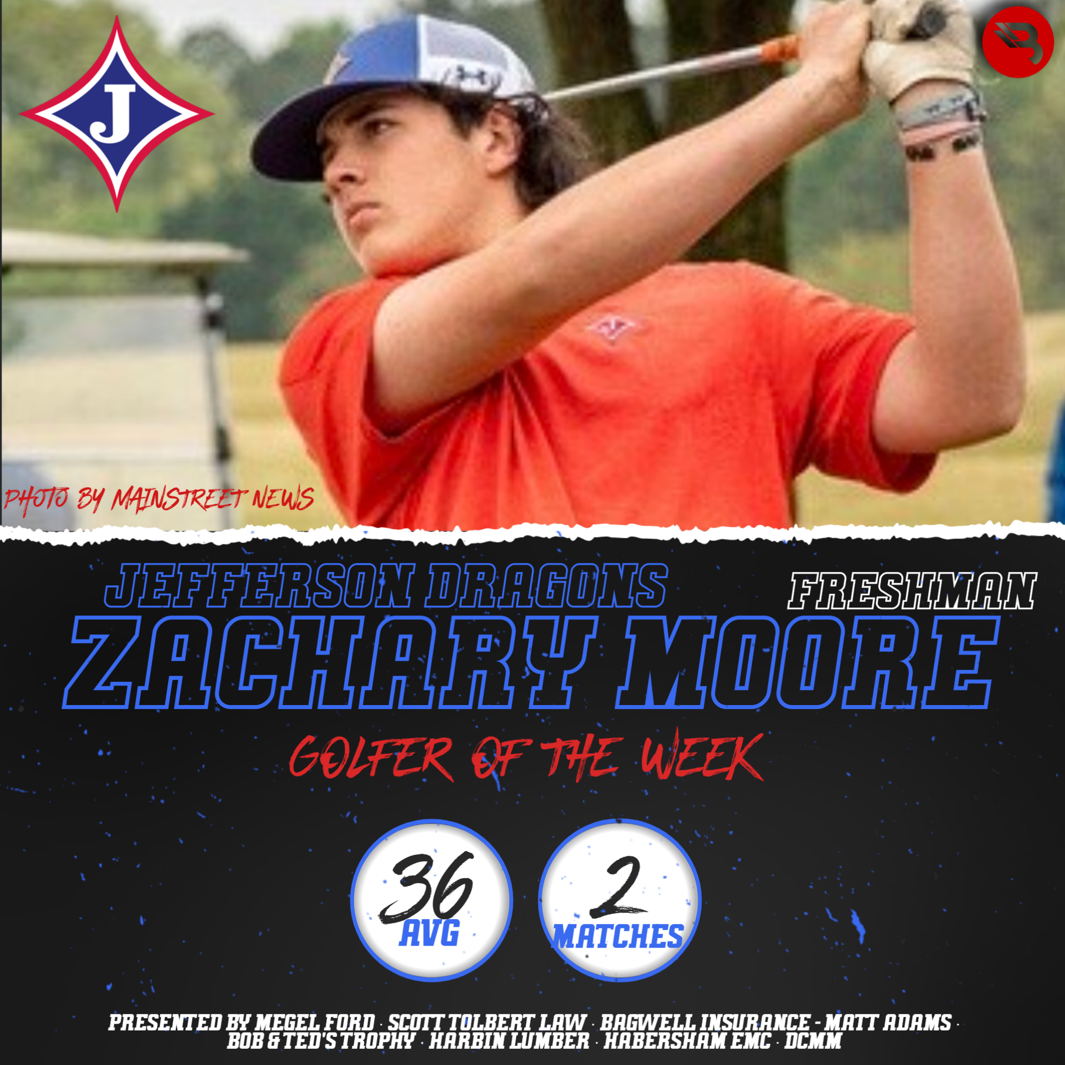 The BLITZ Golfers of the Week are Zachary Moore (Jefferson) and Jack Rowe (Habersham Central). Moore won the Fan Vote with 4,627 of the 9,866 total votes. Rowe was the BLITZ Pick.