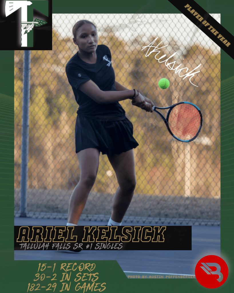 Kelsick becomes the fourth player to win it multiple times. She’s the 9th senior, 2nd from Tallulah Falls, and 9th 1-singles player to earn it.