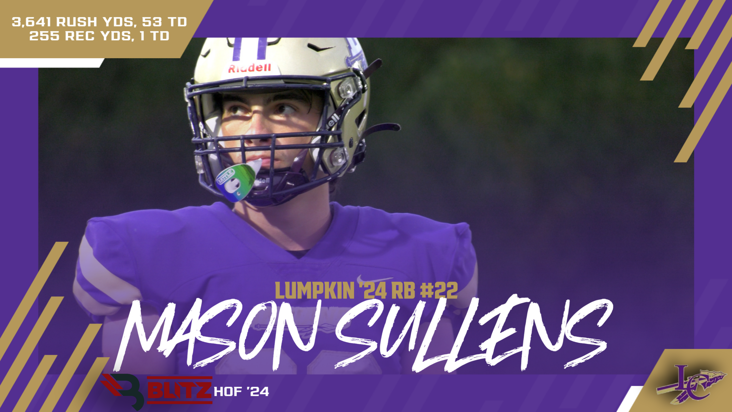 Mason Sullens totaled 3,641 rushing yards and 53 TD, adding 255 receiving with another TD – giving him a grand total of 54 TD and 3,896 yards. He started showing out as a sophomore in limited reps, racking up 243 rushing yards and 2 TD in 2021. In his junior 2022 season, he became a household name with 1,101 rushing yards and 18 TD, adding 148 receiving and another score. Sullens became at one point the state’s leading rusher for several weeks in his special senior 2023 campaign. He rushed for a school record 2,281 yards (50th most in state history) and 33 TD while guiding the Indians to their first-ever Quarterfinals run and Region Championship. Sullens had 4 200-yard rushing games in his final season, including a school record 268 against White County with 4 TD in a 4 OT thriller. He had 3 4-TD games in that All-State season. Sullens left his mark as a two-time 1,000-yd back and one of the best to ever play for Lumpkin. Sullens went on to play for Andrew College. (515 votes)
