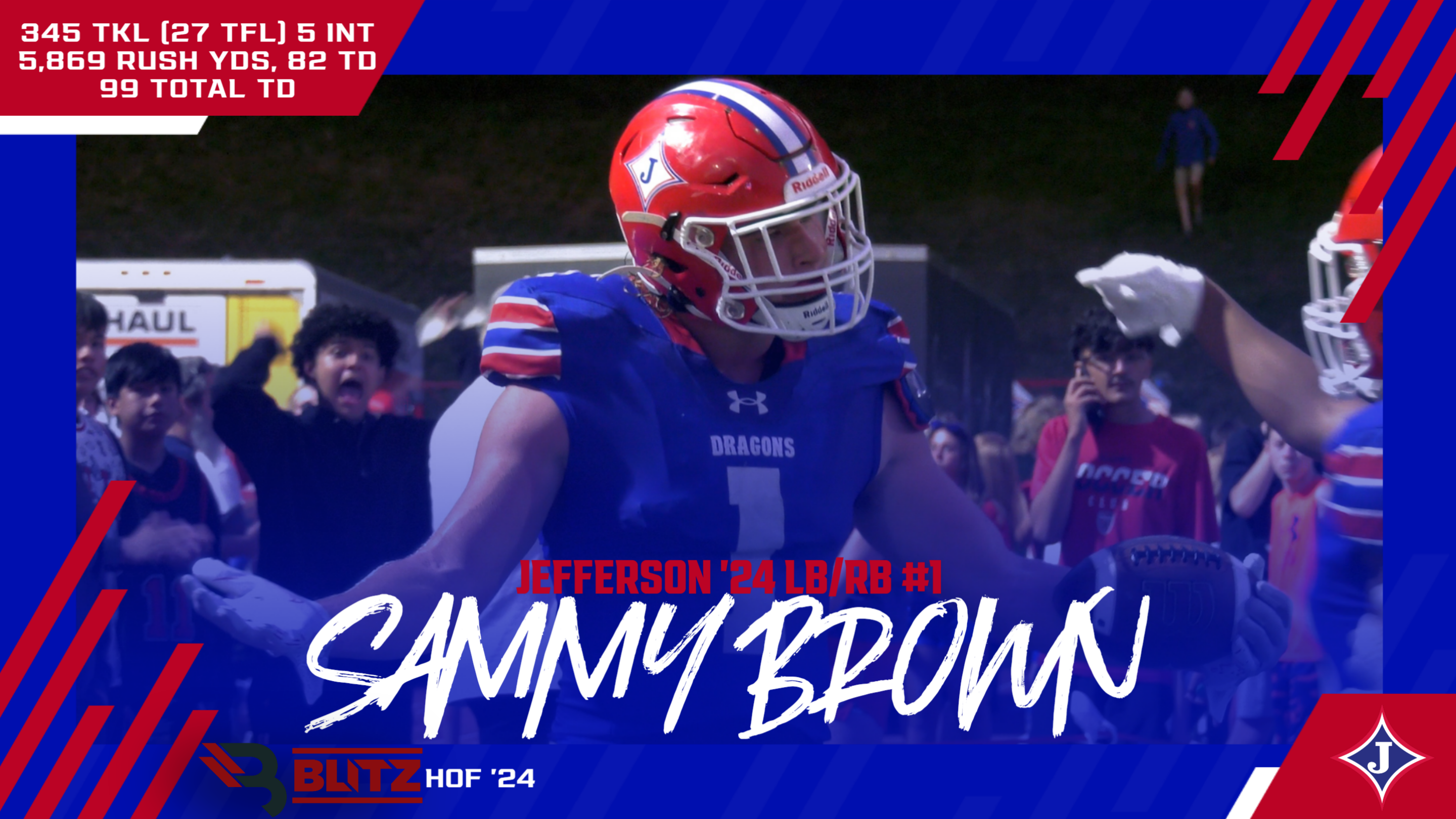 ‘Downtown’ Sammy Brown graduated as a 5-star LB, one of the top overall recruits in the nation. His career included 345 tackles (27 for loss), 5 INT, 4 FF, 5 Sacks, and 4 Defensive/ST TDs. On the offensive side of the ball, he had 5,869 rushing yards and 82 TD (21st in state history), averaging over 10 yards per tote. He had 641 receiving yards with another 11 TD, and even had 71 passing yards and 2 TD. He left Jefferson as our #1 Legacy RB, and his senior season saw him rush for 2,289 YDS (44th in state history) and 36 TD (27th in state history), 202 receiving YDS with another 4 TD, and 153 TKL (12 TFL). He had 3 seasons with over 1,000 rushing yards, closing with a 41-8 overall record for Commerce (2020) and Jefferson (2021-23), with 3 region titles, 4 playoff runs, one Quarterfinals finish and one Semifinals run, and a ridiculous 99 overall TDS (82 rushing, 11 receiving, 2 passing, 4 defensive/special teams). Among his several accolades includes being a 4-time All-American, National Male Athlete of the Year (2022-23), 4-time All-State, 4-time All-Region, 2023 BLITZ Player of the Year (’23), Butkus Award (’23), AJC POY (’23), National POY (’23), and Under Armour All-American invite. He held more than 30 offers, but chose Clemson. (680 votes)