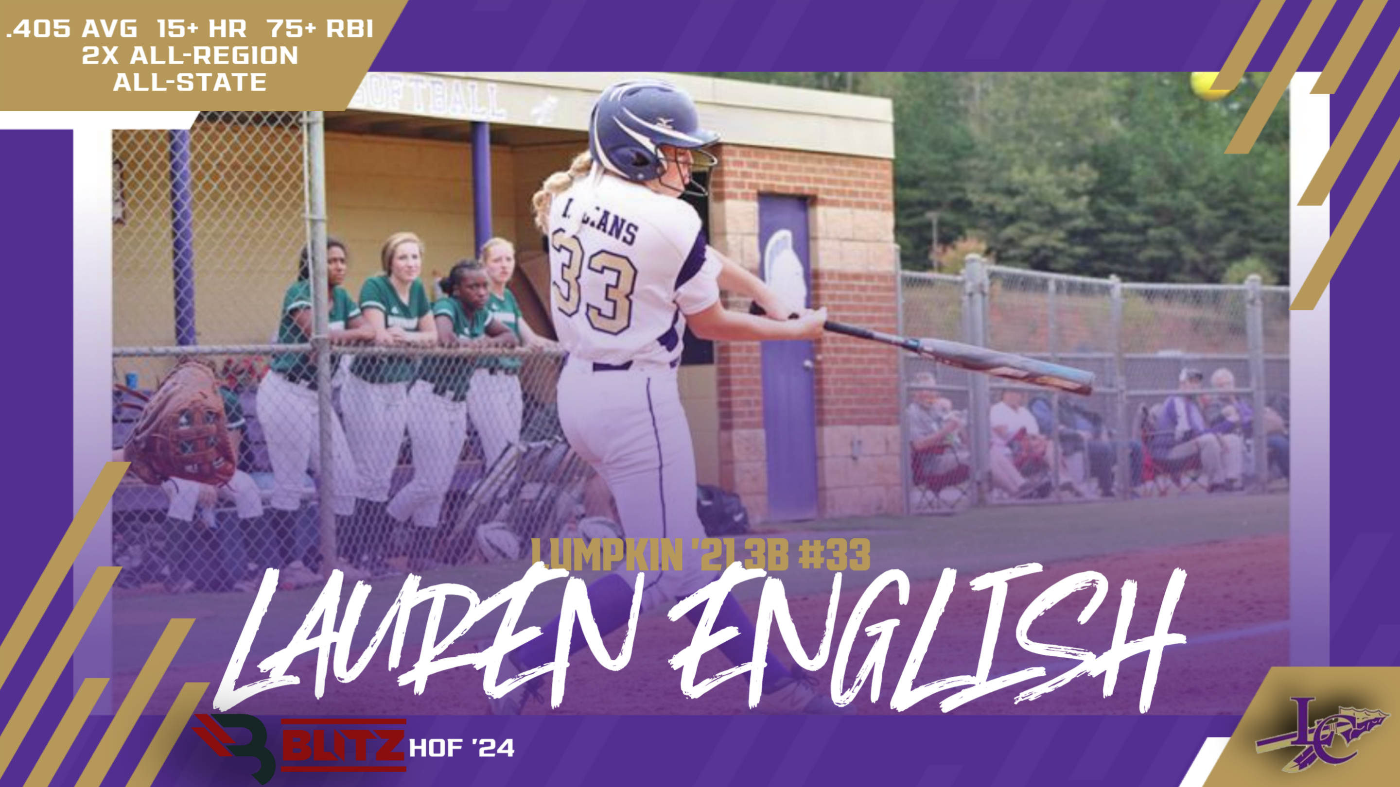 Lauren English was a go-to leader for Lumpkin County. The infielder (primarily 3B) had a monster senior year in 2021, batting .435 with 8 HR and 34 RBI, adding 34 runs. In her junior season, she also hit .380 with 4 HR and 31 RBI with 29 runs. Her career line includes a .405 AVG, 15+ HR, 75+ RBI, and 75+ runs. She was an All-State selection once and 2-time All-Region pick. She went on to play for Piedmont College. (67 votes)
