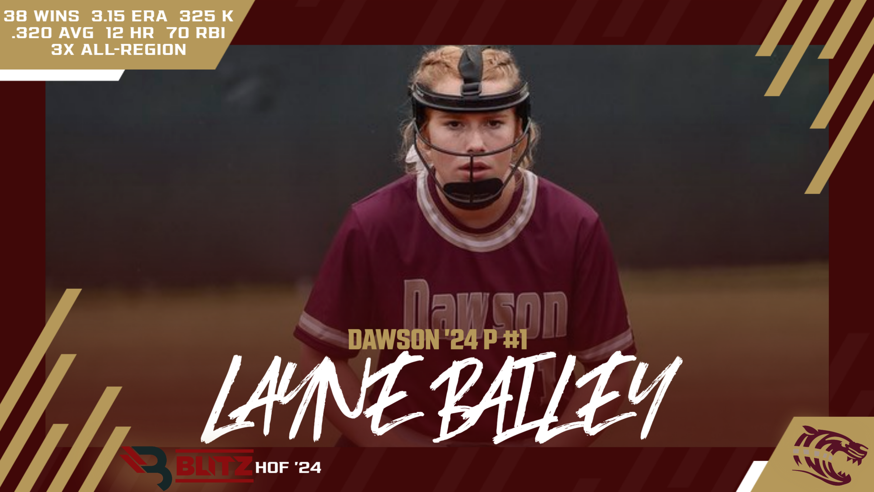 Layne Bailey was stellar at Dawson County. The pitcher saved her best for last, leading the Lady Tigers to a deep playoff run. The All-State selection won BLITZ Player of the Year as a senior in 2023, going 17-9 with a 1.80 ERA and 164 K, and at the plate hit .345 with 4 HR and 19 RBI. She had a 3.18 ERA as a junior with 10 wins and 87 K, while hitting .299 with 2 HR and 13 RBI. In her sophomore season, Bailey hit .304 with 5 HR and 31 RBI, adding 29 runs, while going 11-10 with a 4.65 ERA and 74 K. All told, the 3-time All-Region selection had 38 wins, a 3.15 ERA, and 325 K in the circle, and hit .320 with 12 HR, 70 RBI, and 50 R. She went on to play at Lee University. (26 votes, Producer’s Pass)
