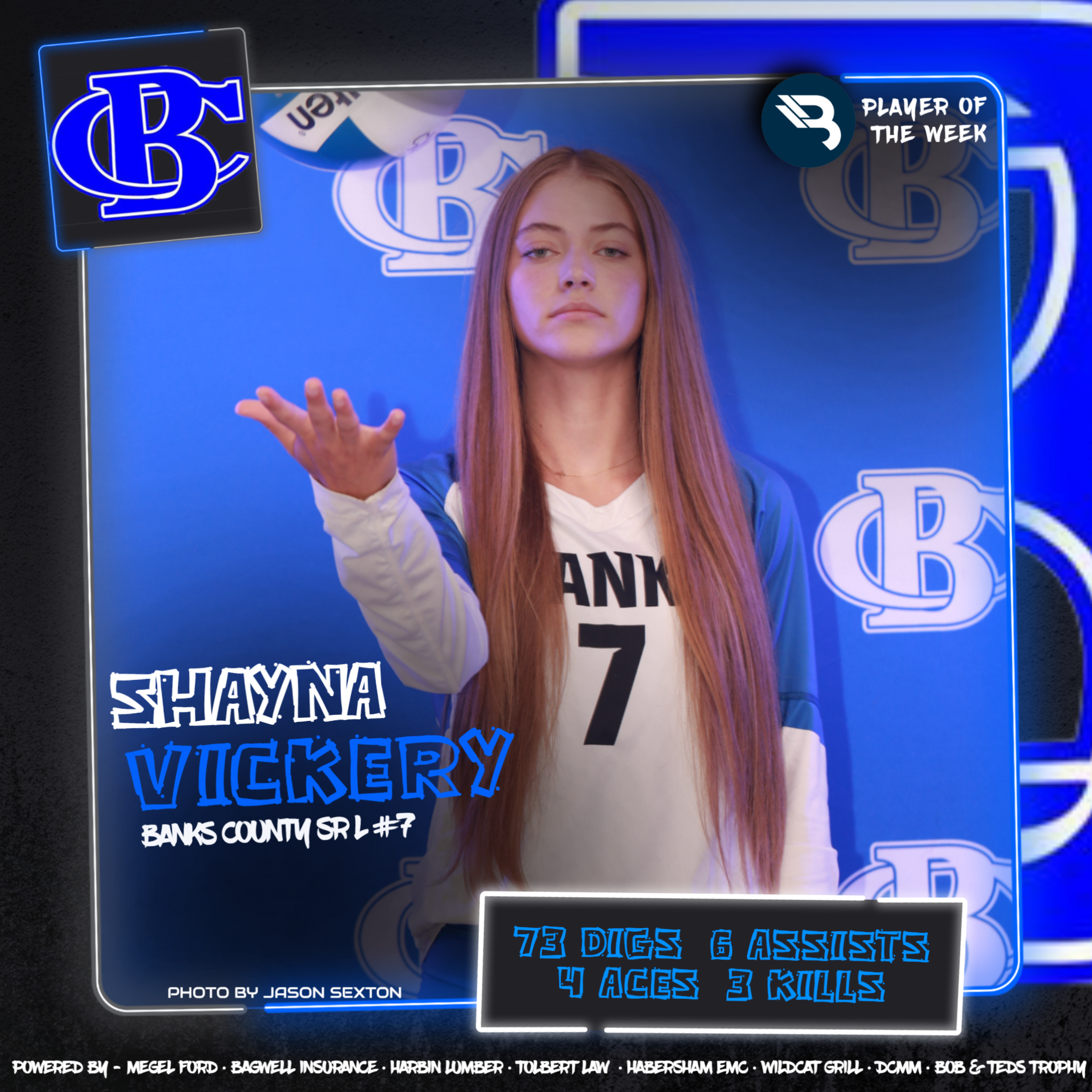 The BLITZ Volleyball Players of the Week are Shayna Vickery (Banks County) and Becca Heyl (Tallulah Falls). Vickery won the Fan Vote with 15,627 of the 30,185 total votes. Heyl was the BLITZ Pick.