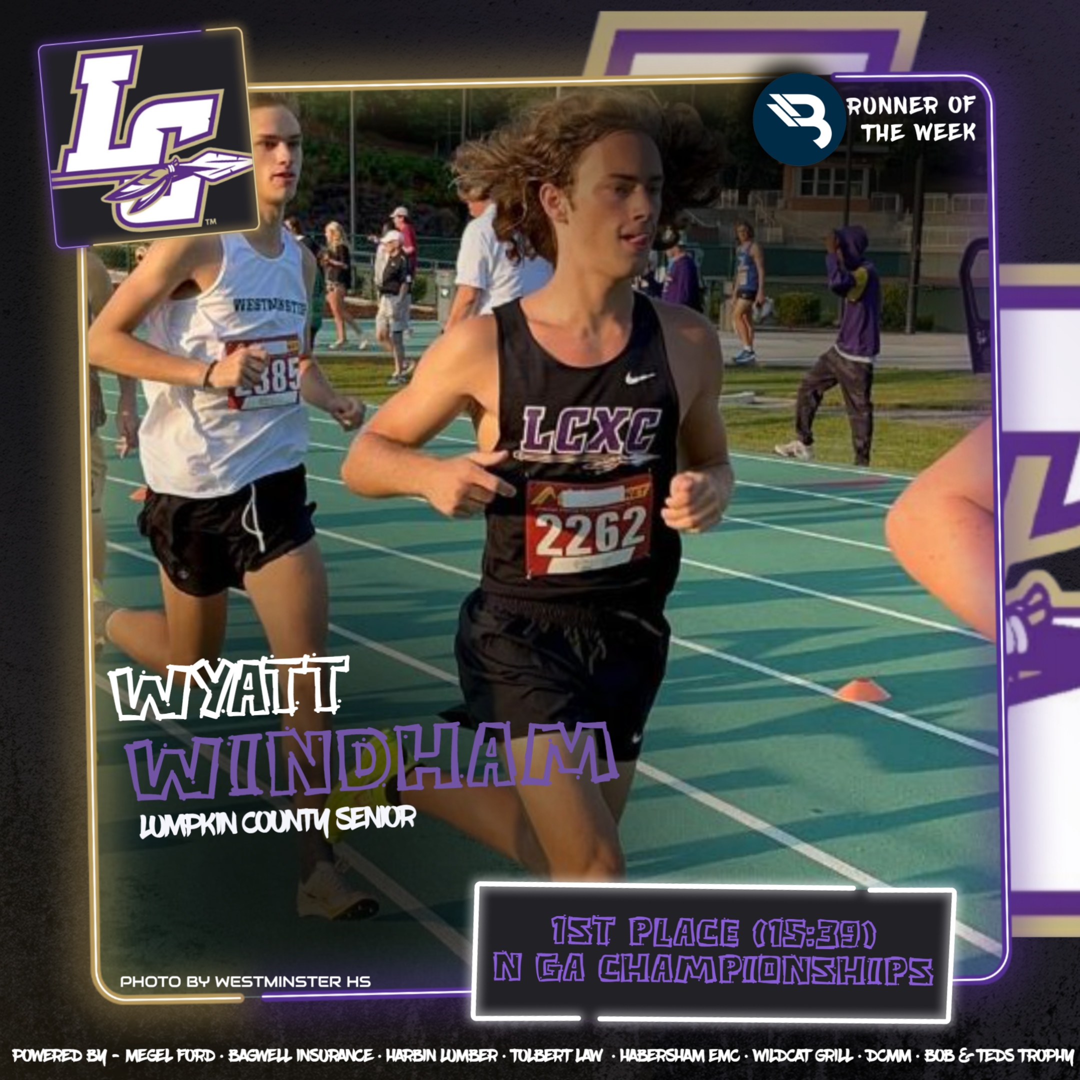 For a second straight week, Lumpkin County’s GOAT, Wyatt Windham, earns Runner of the Week status. The senior owned the field at the North Georgia Championships, crossing the line first at 15:39. This is a milestone for Windham, who now has won 10 Runner/Athlete of the Week awards, becoming one of only 5 BLITZ athletes to earn double-digit weekly awards.