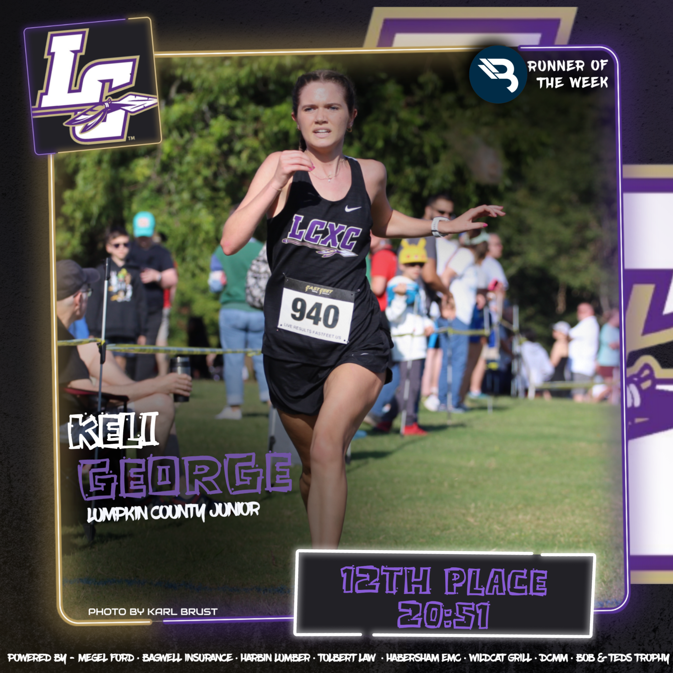 Keli George put up a solid time with a 20:51 last week at the Wingfoot XC Classic for Lumpkin County. The junior came in 12th place, and takes her 5th career POW award.