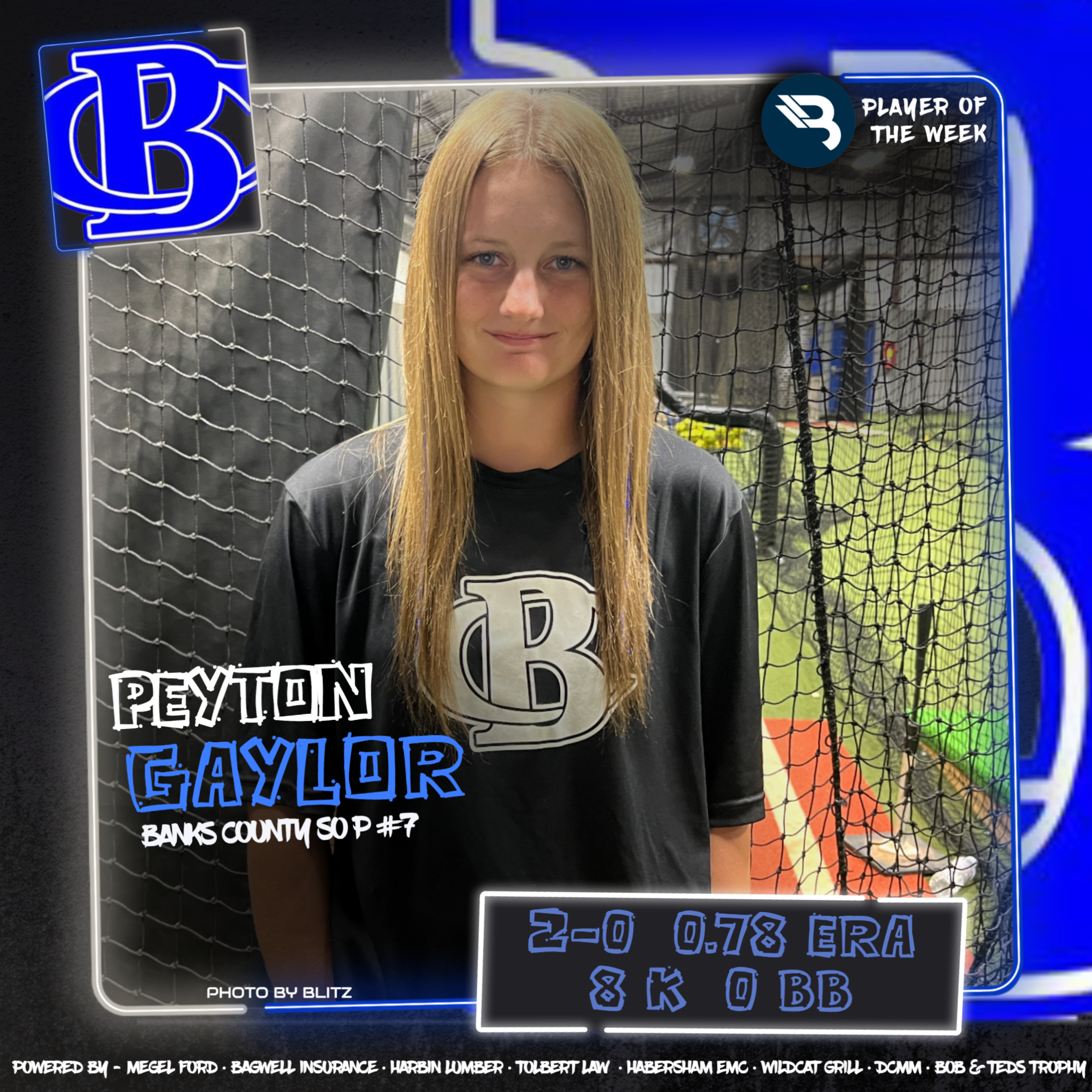 The BLITZ Softball Players of the Week are Scotlyn Fain (Towns County) and Peyton Gaylor (Banks County). Fain won the Fan Vote with 4,747 of the 11,473 total votes. Gaylor was the BLITZ Pick.