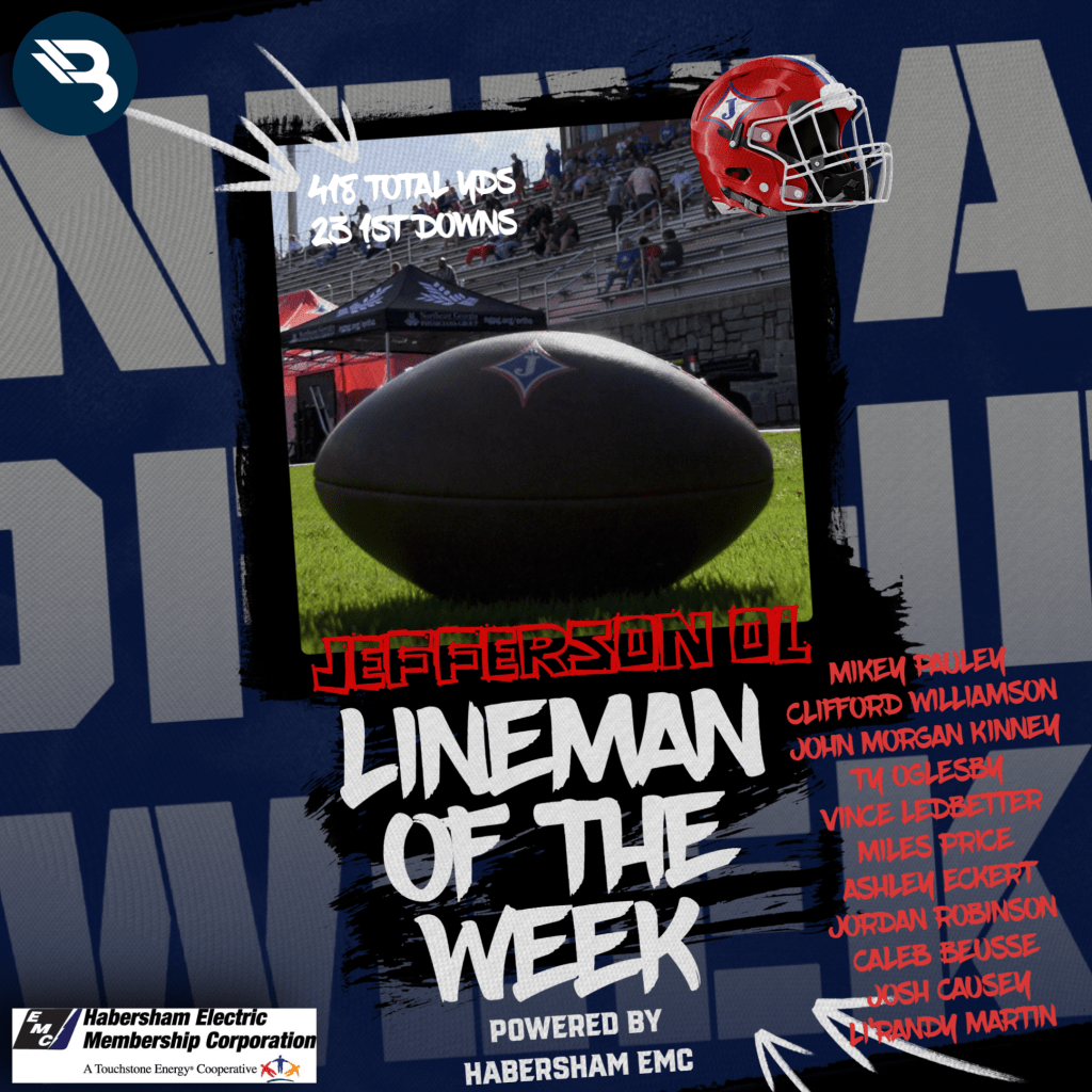Throughout the football season, Habersham EMC powers our Linemen of the Week. This week’s winners are Carver Jarrard (Rabun County) for the O-Line, as well as Jefferson’s trenchmen.