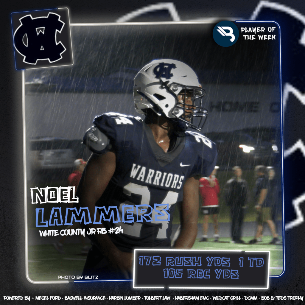 The BLITZ Football Players of the Week are Noel Lammers (White County) and Paris Wilbanks (Habersham Central). Lammers won the Fan Vote with 2,695 of the 7,148 total votes. Wilbanks was the BLITZ Pick.