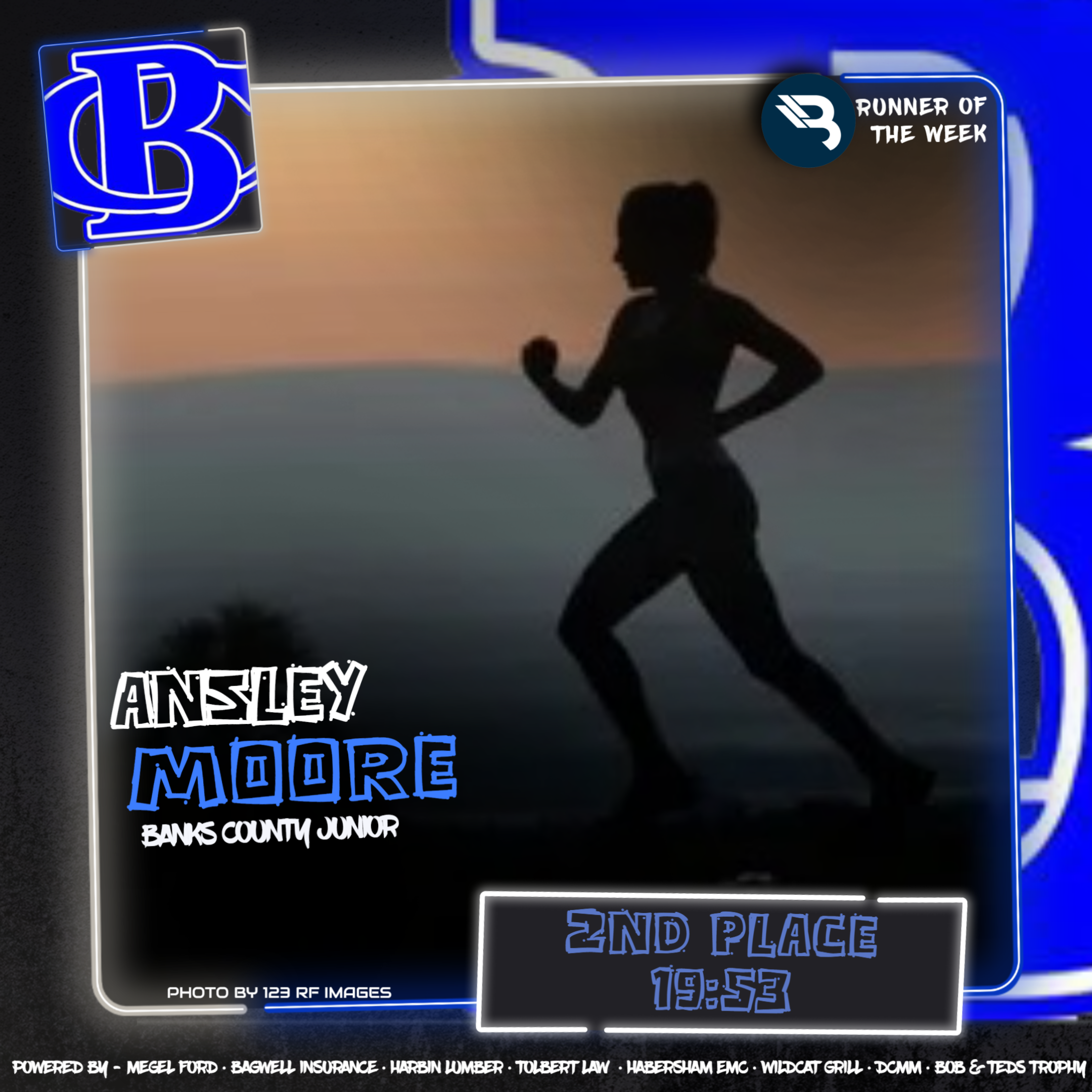 Ansley Moore is new to Banks County from Athens Christian as a 2-time Region Champion in XC and 7-time Region Champion in T&F as well as being a State Champion in the 800 and multiple state top-5s and top-10s in distance (both XC and T&F). She’s incredible. The junior came in 2nd place with a 19:53 last week in the Mountain Invite to lead the Lady Leopards. This is her first POW award.