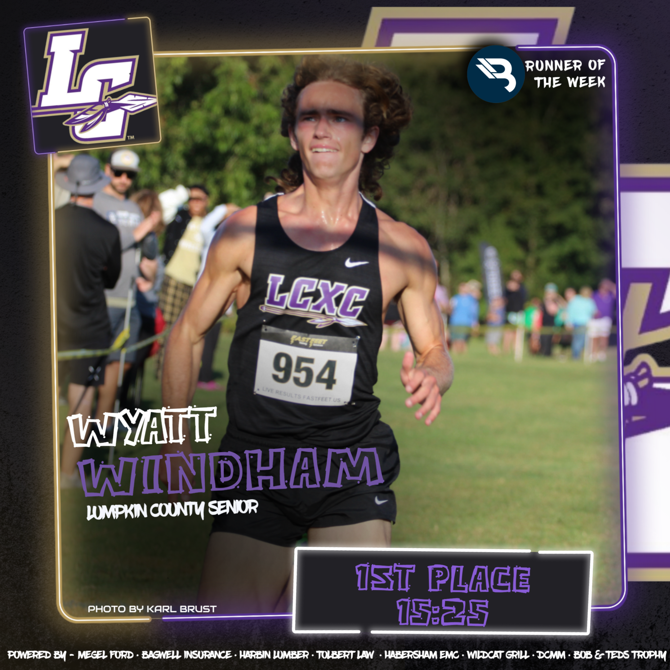 4 times this season, and now 12 times in his career, Wyatt Windham is the Runner or Athlete of the Week. The senior led Lumpkin County once again last week, coming in first with a 15:25 at the Kent Kramer Classic. Safe to say…Wyatt Windham is the best boys XC runner we’ve ever covered, and it’s not even close.