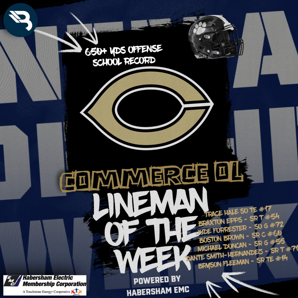 Throughout the football season, Habersham EMC powers our Linemen of the Week. This week’s winners are the Commerce O-Line and Kamari McCarter (Stephens County).