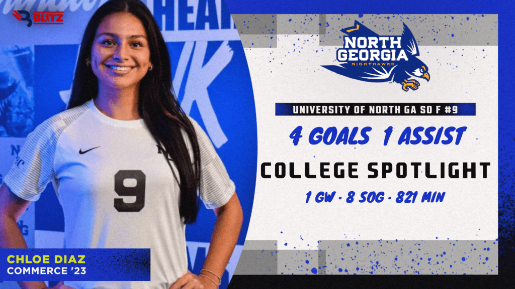 In her freshman season, Commerce native Chloe Diaz (’23) logged all of 3 games played and 69 total minutes on the pitch. She was determined to change that. Now a full-time starter, the sophomore forward has become an anchor in the UNG lineup.