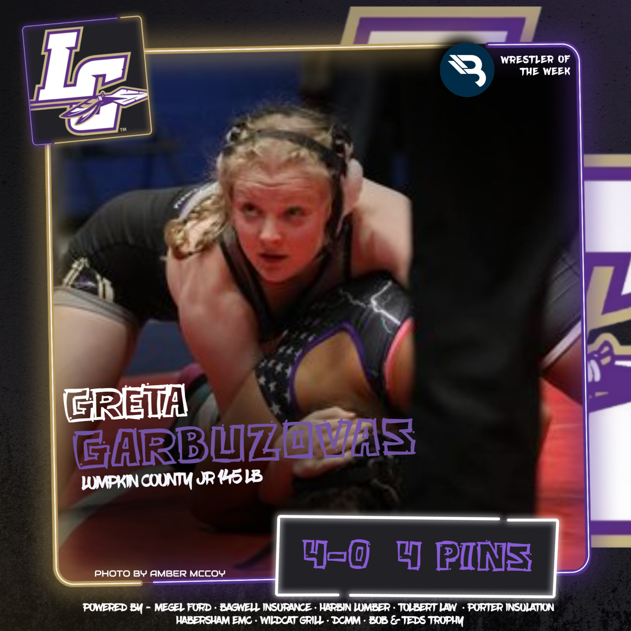 Greta Garbuzovas, the reigning back-to-back Wrestler of the Year for BLITZ, takes her first Wrestler of the Week award after going 4-0 with 4 pins.
