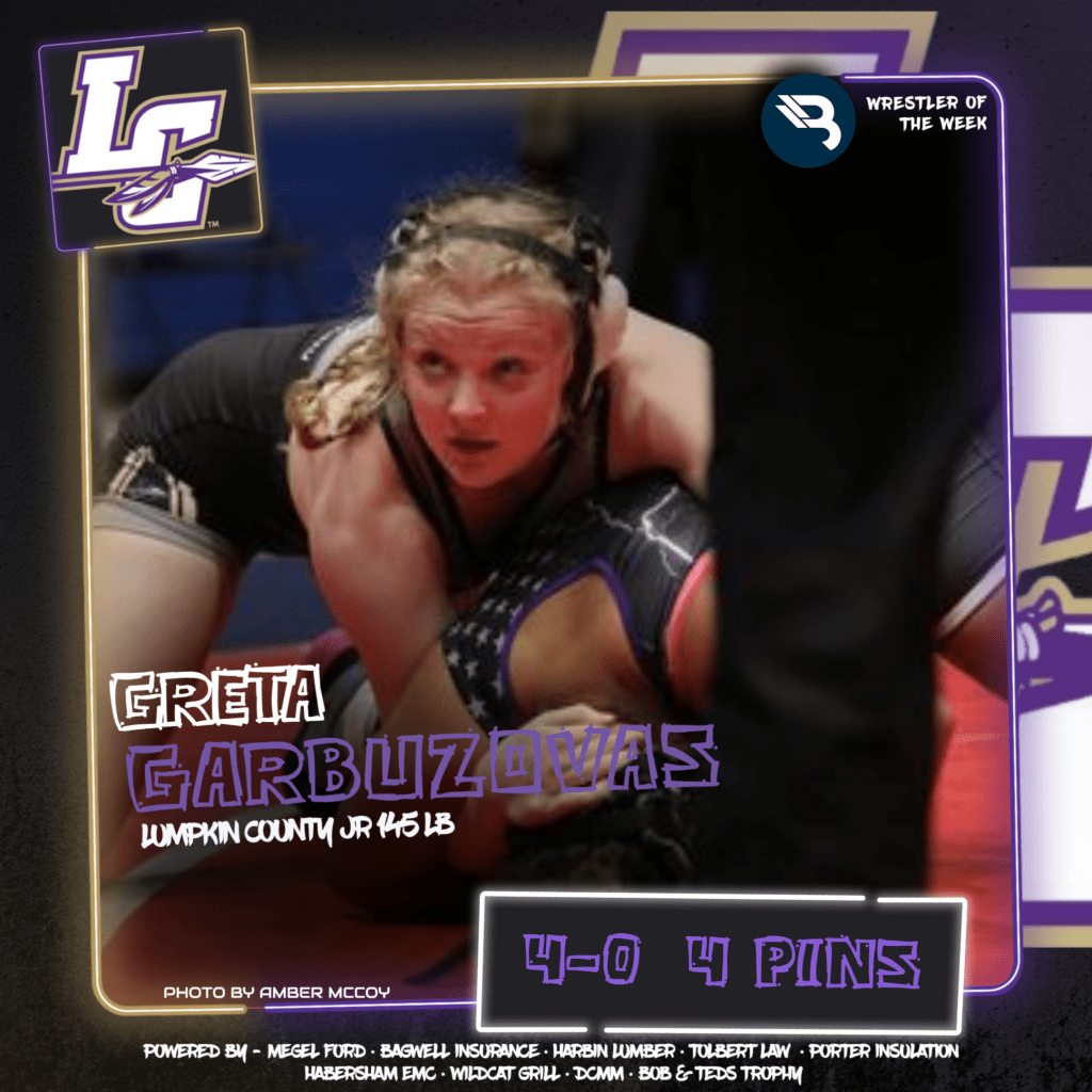 The BLITZ Wrestlers of the Week are Carder King (Habersham Central) and Greta Garbuzovas (Lumpkin County). King won the Fan Vote with 9,147 of the 20,281 total votes. Garbuzovas was the BLITZ Pick.
