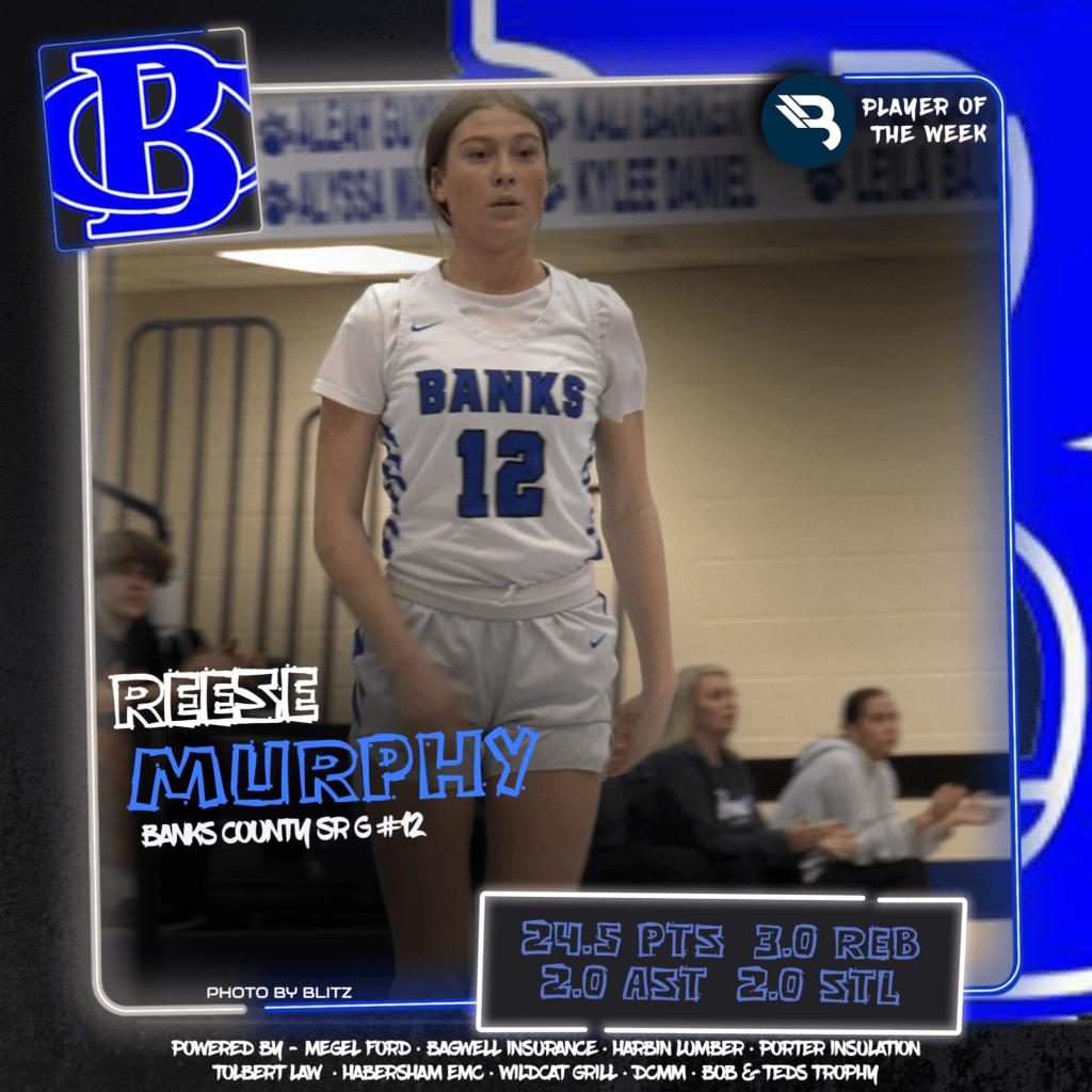 The BLITZ Girls Basketball Players of the Week are Reese Murphy (Banks County) and Kylie Watkins (White County). Murphy won the Fan Vote with 1,358 of the 2,523 total votes. Watkins was the BLITZ Pick.