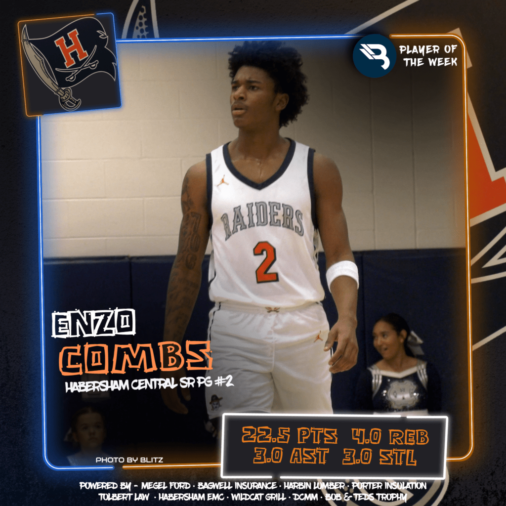 Habersham Central’s electric guard Enzo Combs had yet another impressive week. The senior for the top-5 ranked Raiders went for 22.5 points, 4.0 rebounds, 3.0 assists, and 3.0 steals per game, earning his second career POW award.