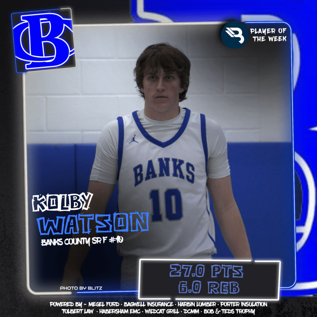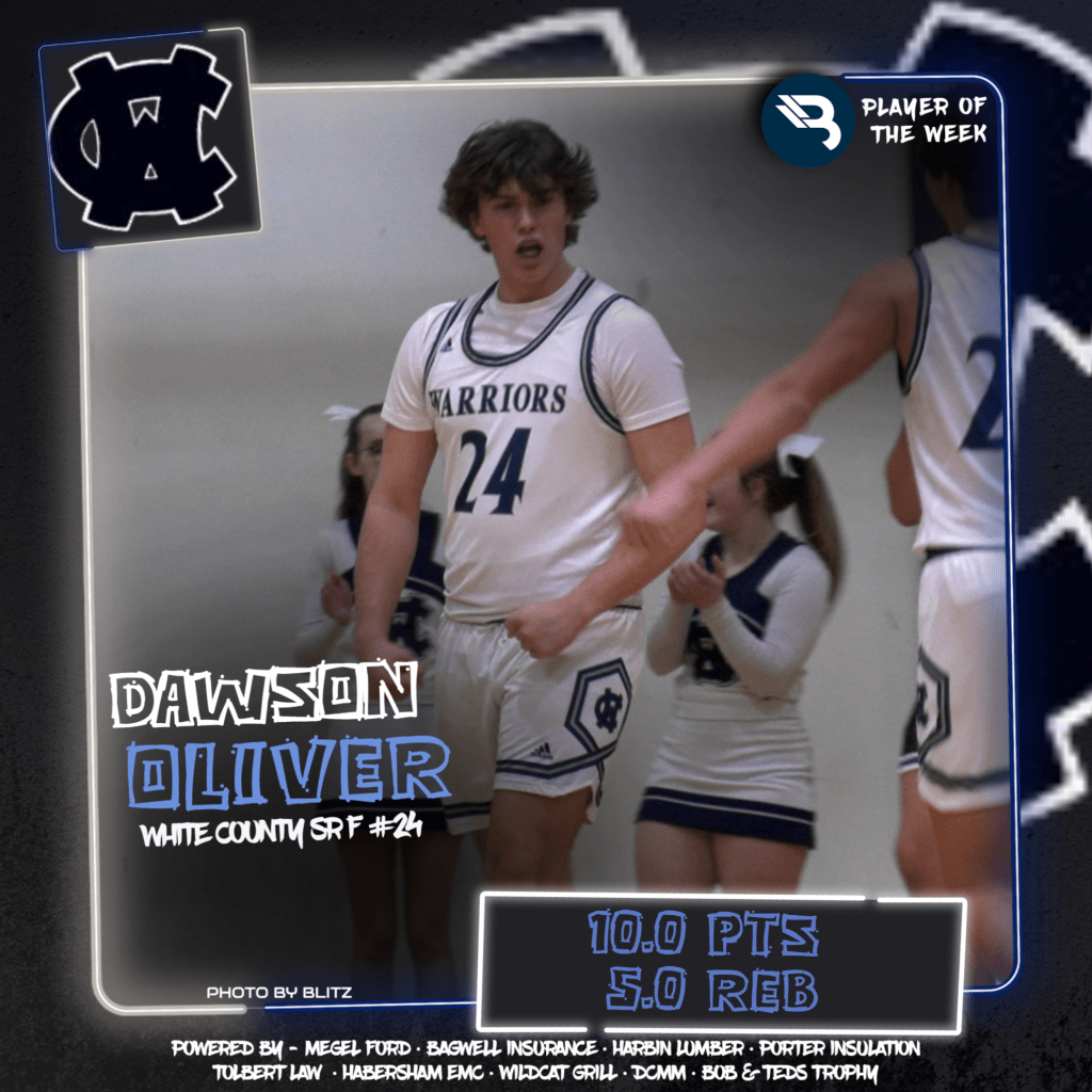 The BLITZ Boys Basketball Players of the Week are Dawson Oliver (White County) and Kolby Watson (Banks County). Oliver won the Fan Vote with 1,904 of the 3,532 total votes. Watson was the BLITZ Pick.