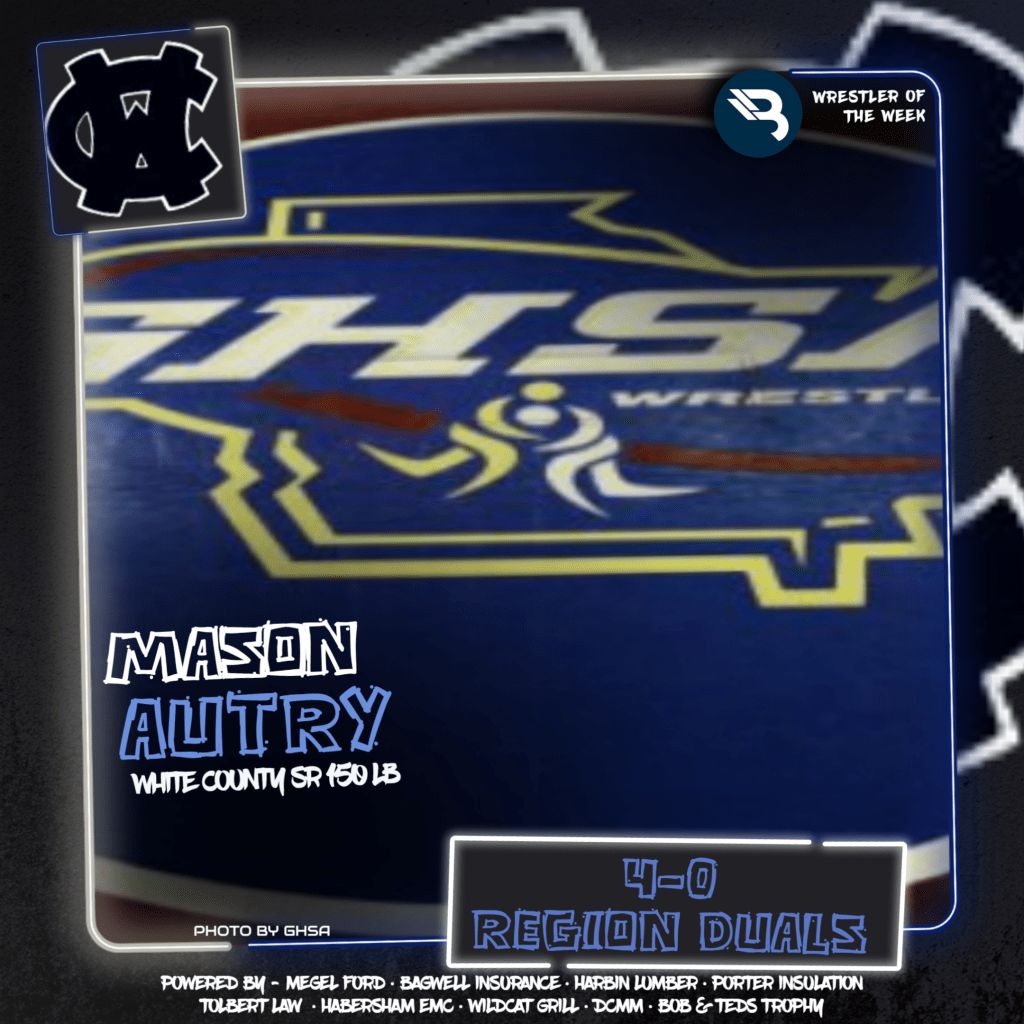 The BLITZ Wrestlers of the Week are Mason Autry (White County) and Cody McBrayer (Dawson County). Autry won the Fan Vote with 9,297 of the 19,496 total votes. McBrayer was the BLITZ Pick.