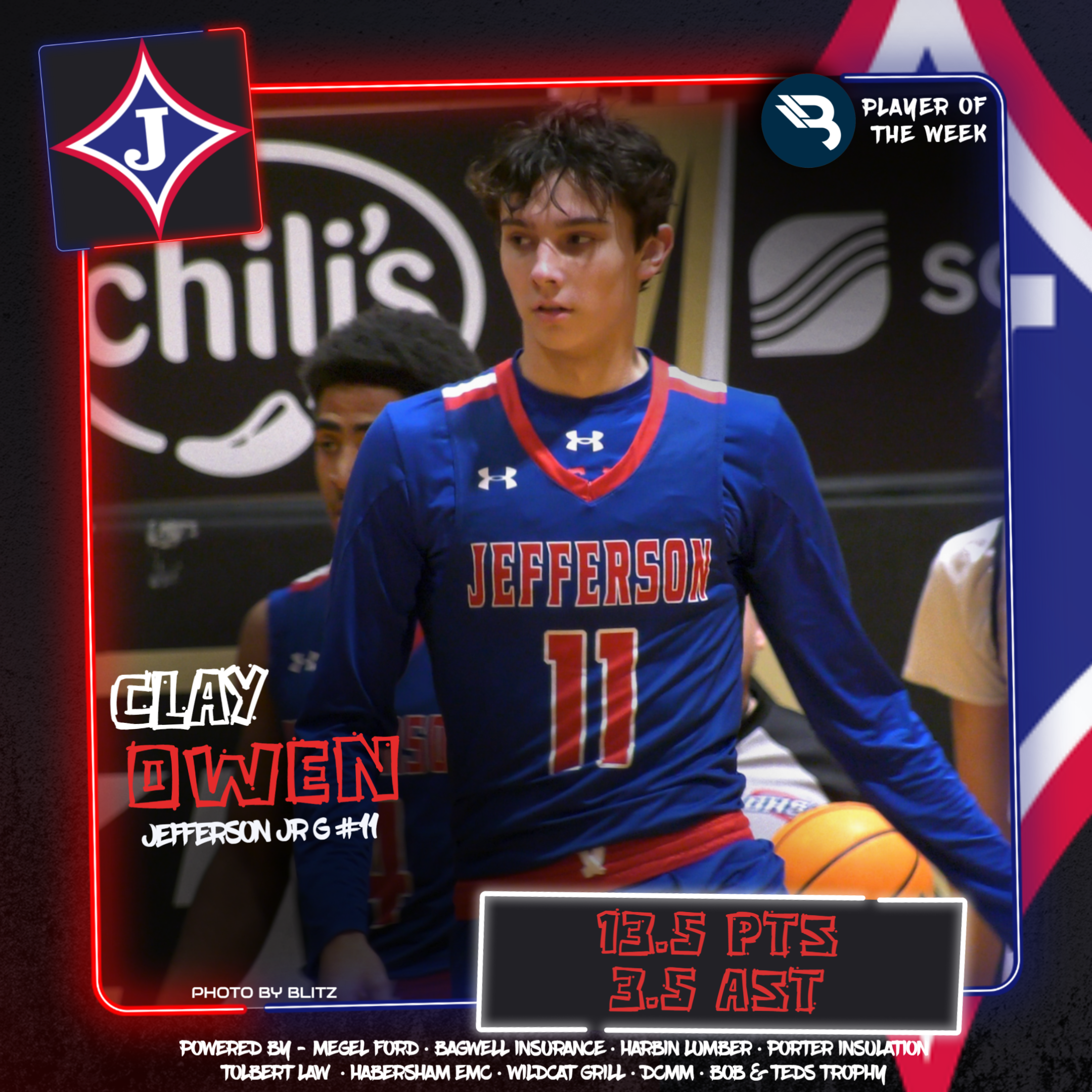 The BLITZ Boys Basketball Players of the Week are Clay Owen (Jefferson) and Houston Henry (Union County). Owen won the Fan Vote with 4,037 of the 5,921 total votes. Henry was the BLITZ Pick.