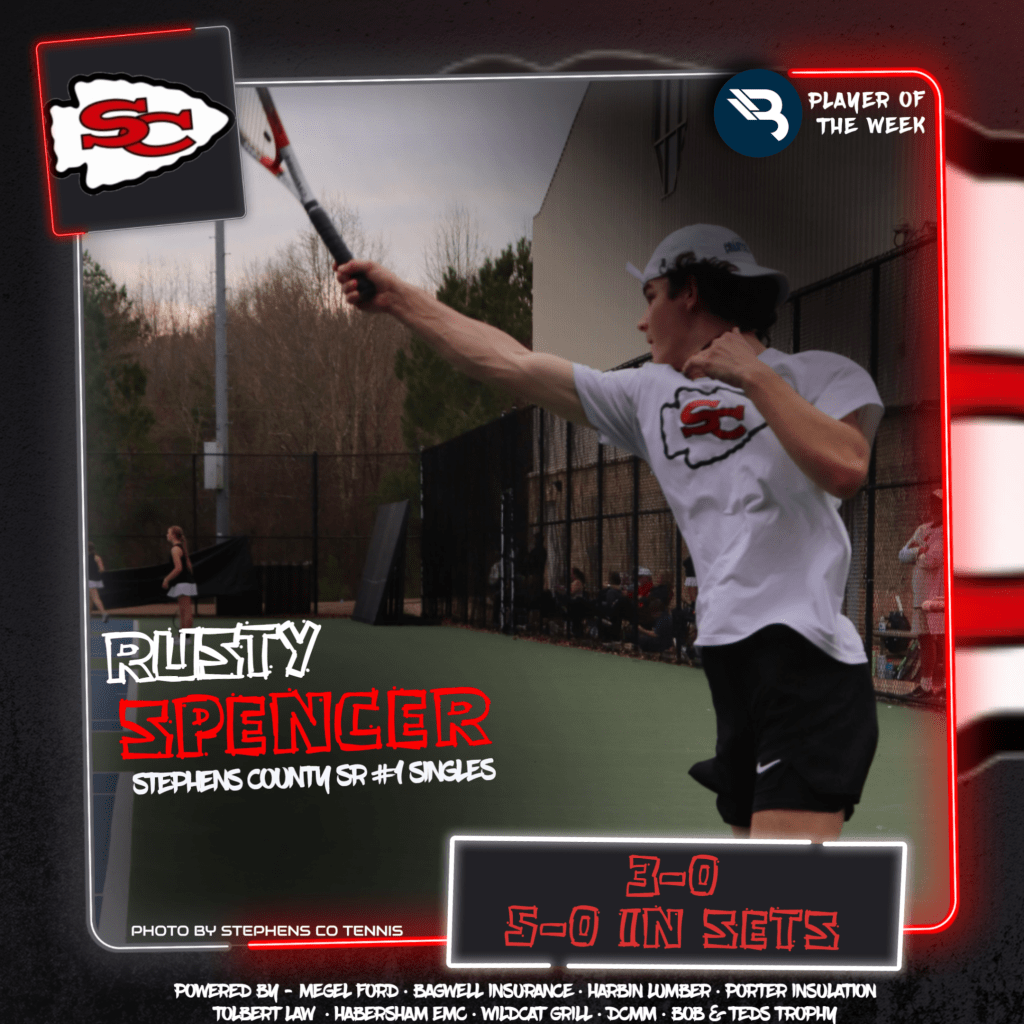 The BLITZ Tennis Players of the Week are Kailey Otero (Habersham Central) and Rusty Spencer (Stephens County). Otero earned the Fan Vote with 13,827 of the 29,775 total votes. Spencer was the BLITZ Pick.