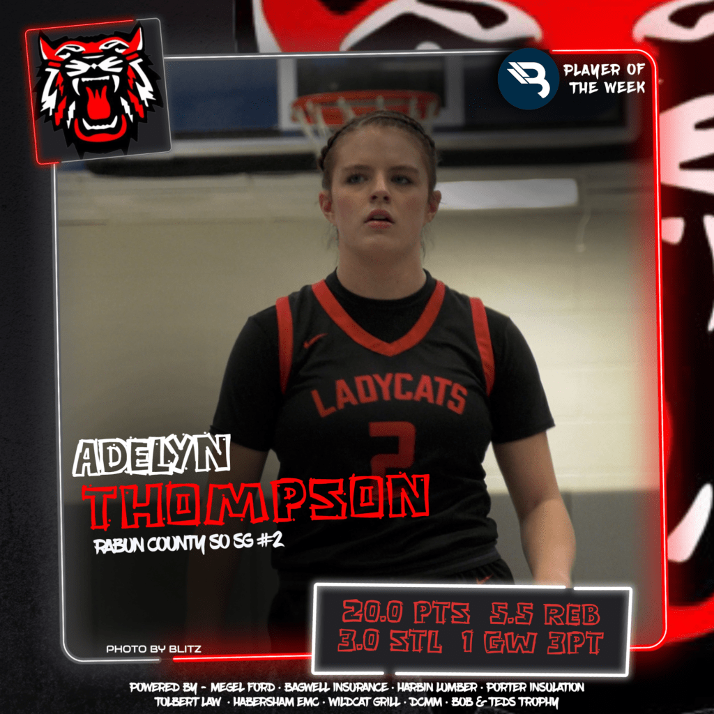 No one was more clutch than Adelyn Thompson. Against Armuchee, down two with the ball, the sophomore guard took a deep 3-pointer, and drained it to give Rabun County a thrilling round one upset win. Over the first two rounds, she averaged 20.0 points, 5.5 rebounds, and 3.0 steals per game while getting the Lady Cats to the Elite 8. This is her third POW award.