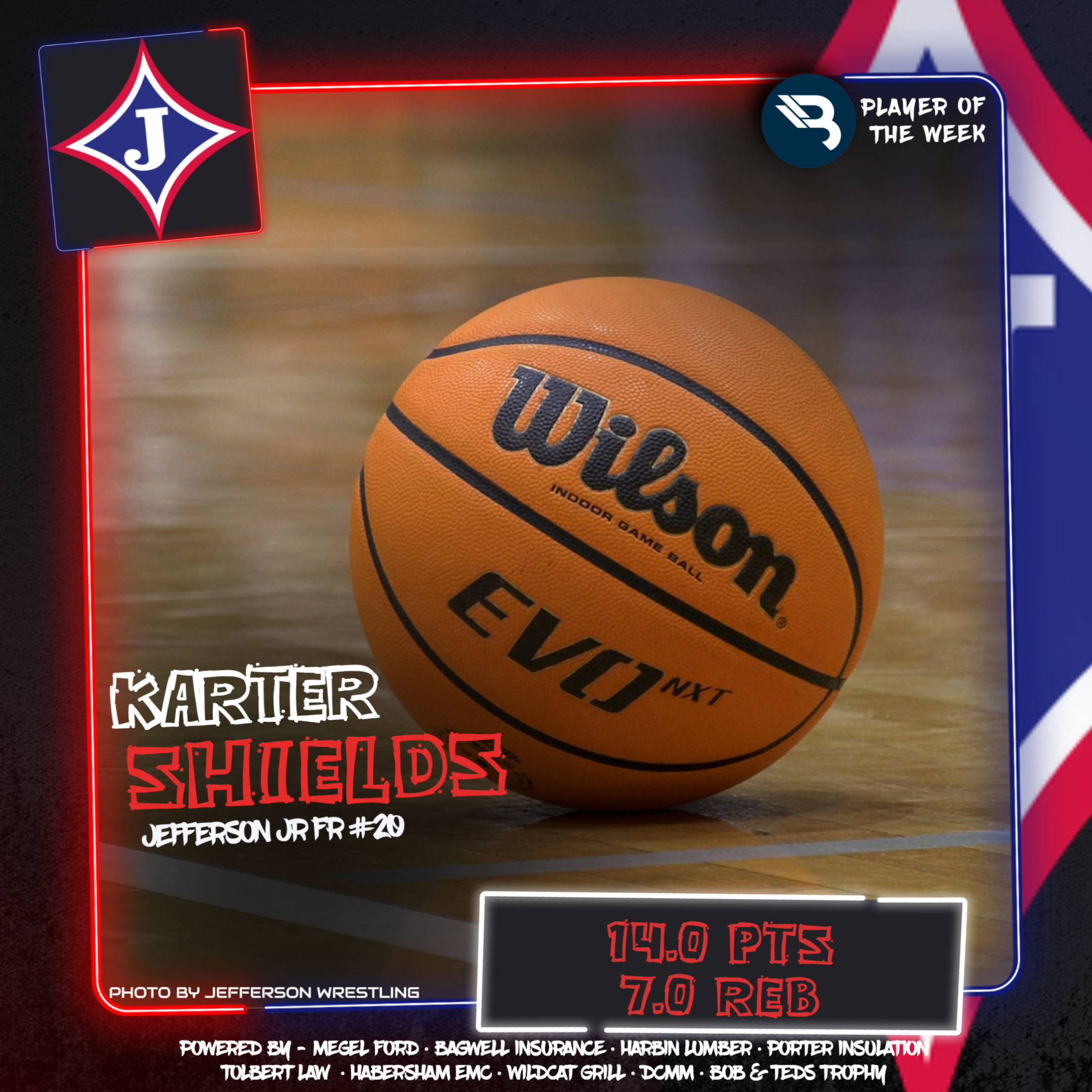 Jefferson junior Karter Shields shined bright last week for the Dragons, helping lift Jefferson to the Elite 8. The forward averaged 14.0 points and 7.0 boards, taking his first POW award.