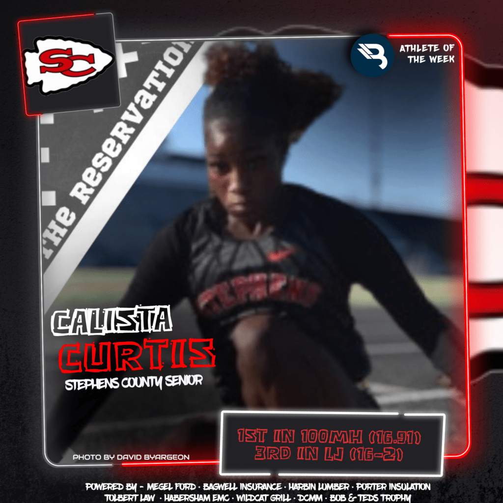 The BLITZ Track & Field Athletes of the Week is Calista Curtis (Stephens County).