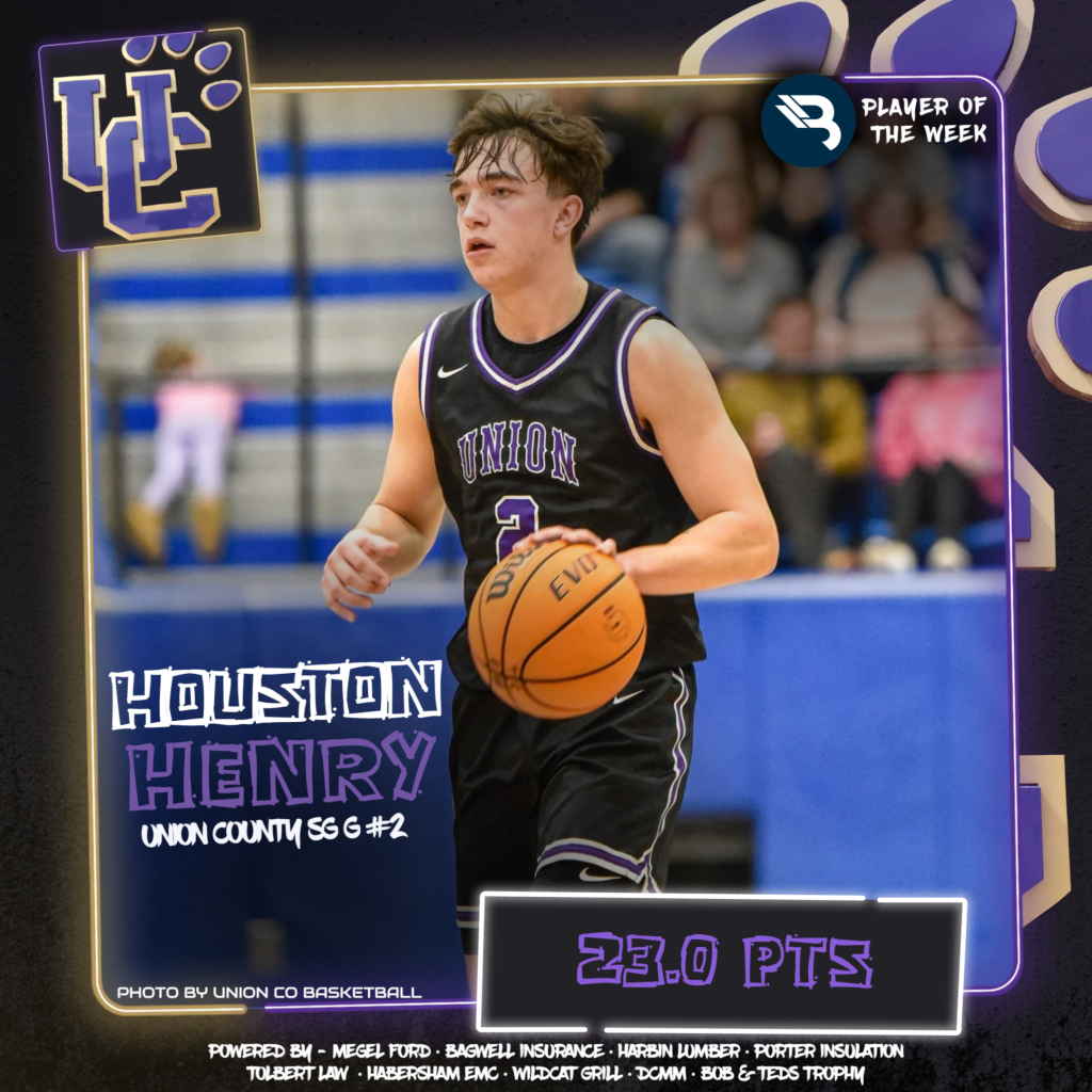 The Panthers got 22 points from leader Houston Henry in the Elite 8, then 24 in the Final 4 to reach the State Championship. The senior guard averaged 23.0 in the last two games for Union County, who will play in their second-ever title game. This is Henry’s 8th career POW award.