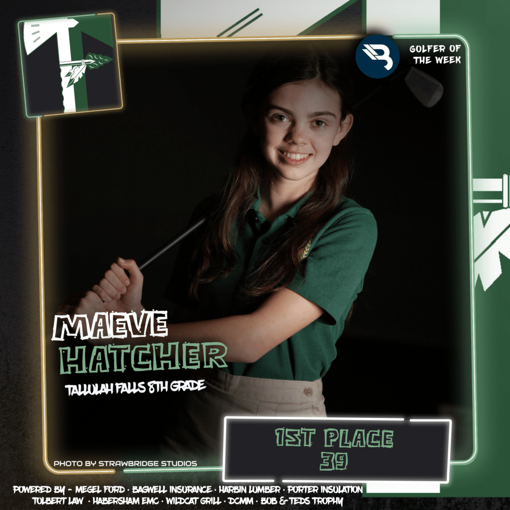 For the first time ever, an 8th-grader wins a BLITZ award. The requirement is a varsity player. With Tallulah Falls now in GIAA, that makes Maeve Hatcher’s historic award possible (8th graders can play at the varsity level). She fired a low-medalist round for TFS last week with a 39.