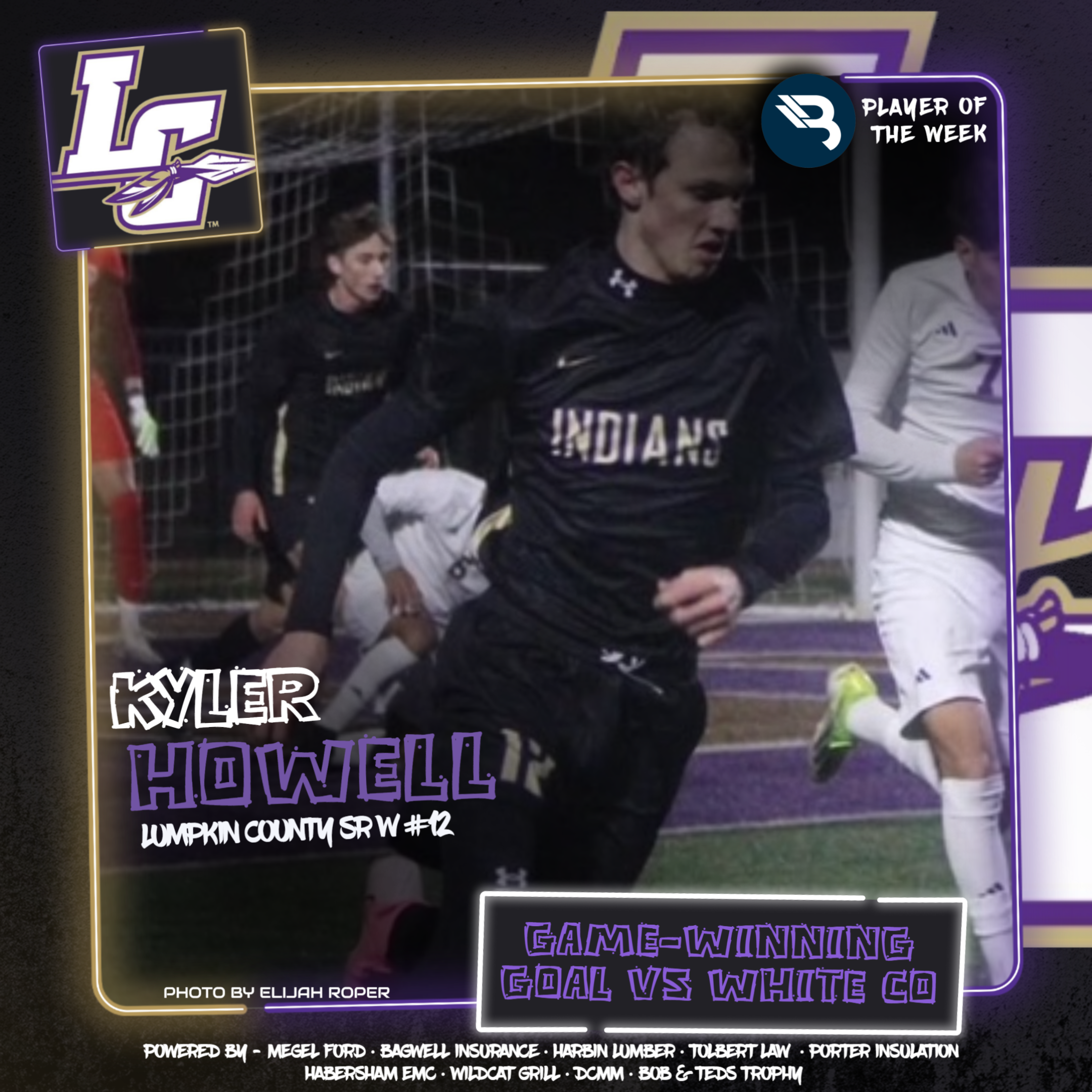 Kyler Howell came up clutch for the Indians. The Lumpkin County senior wing had the game-winning goal against White County, claiming his 1st POW award.