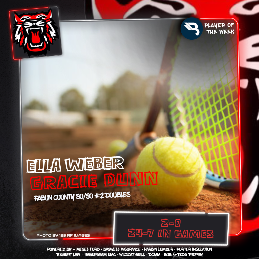 The BLITZ Girls Tennis Players of the Week are Ella Weber & Gracie Dunn (Rabun County) and Jaeda-Lee Daniel-Joseph (Tallulah Falls). The Rabun duo earned the Fan Vote with 8,116 of the 16,541 total votes. Daniel-Joseph was the BLITZ Pick.