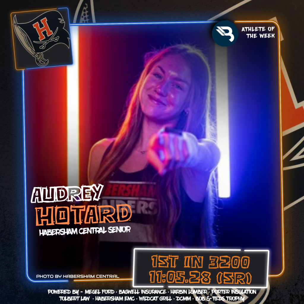 Audrey Hotard takes Athlete of the Week honors after finishing 1st in the 3200 with a school record of 11:05.28, beating her own previous mark. This is her 13th BLITZ POW award, making her the 3rd-most decorated athlete ever.