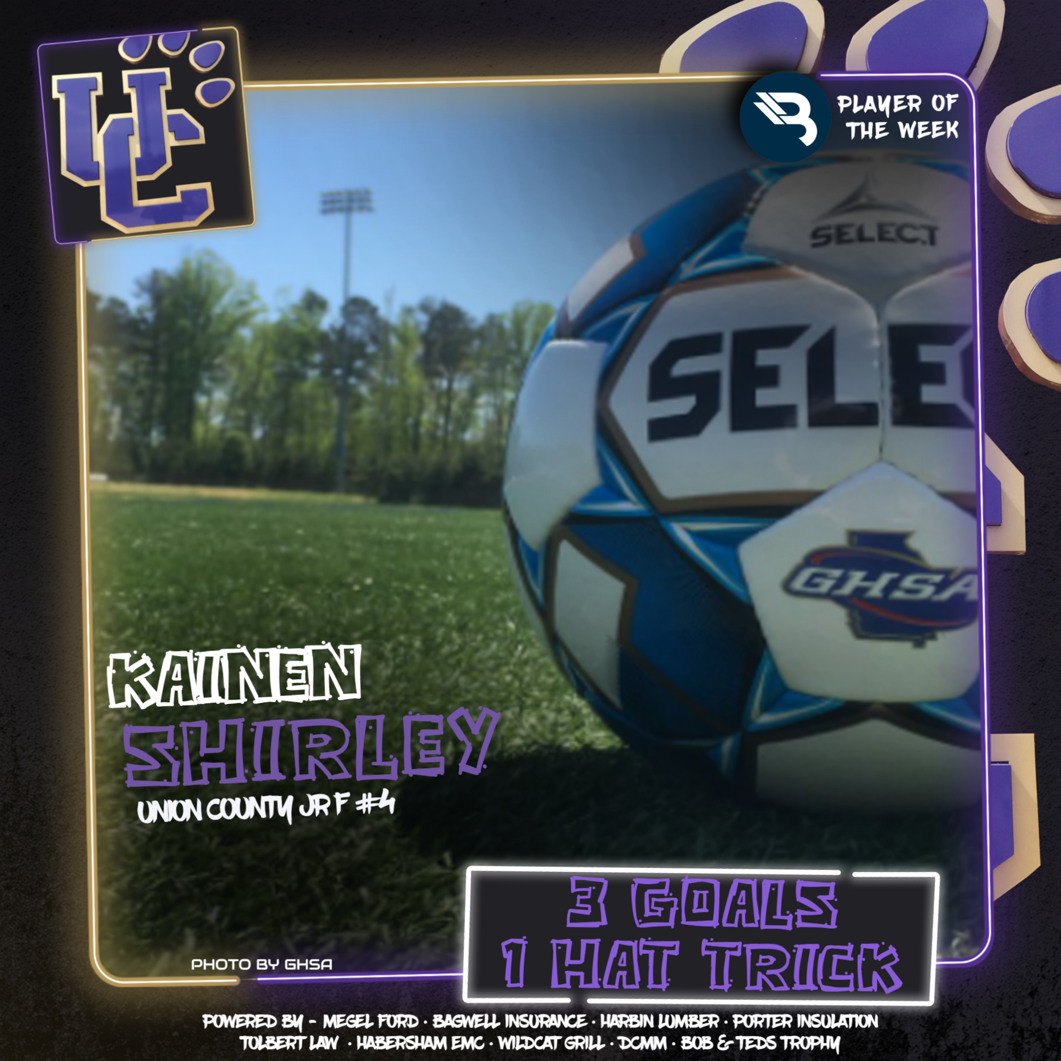 The BLITZ Soccer Players of the Week are Dustin Barrett (Towns County), Paisley Cathey (Habersham Central), and Kainen Shirley (Union County). Barrett earned the Fan Vote with 8,345 of the 14,046 total votes. Cathey and Shirley were the BLITZ Picks.