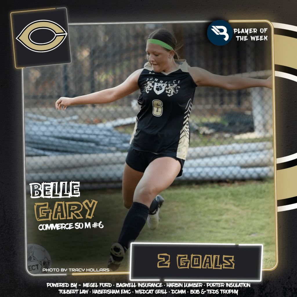 Belle Gary notched two goals last week in a single game for Commerce. The Lady Tigers’ sophomore midfielder now has two career POW awards.