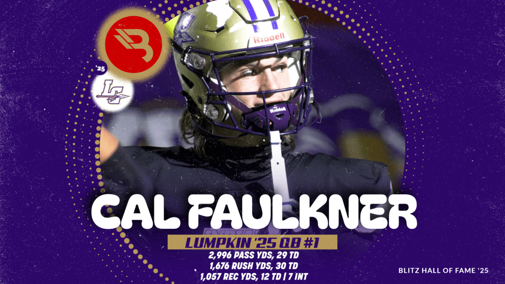 Cal Faulkner became a generational talent for Lumpkin County. The WR-turned-QB, who also stars on the other side of the ball, is the highest-recruited player in Indians football history. The 3-star committed to Georgia Tech. But his high school career has been nothing short of stellar. As a freshman, he caught 29 passes for 266 yards and a TD, and had a rushing score as well. Then he exploded as a sophomore with 48 receptions for 677 yards and 9 TD, and had 2 rushing TDs as well as a pick-6, some passing yards, and a ton in the return game. So with nearly 1,000 receiving yards and 13 total TD, he suddenly moved to QB as a junior. The result…a first-ever region title for Lumpkin and Quarterfinals run. He threw for 1,706 yards and 19 TD against just one INT, adding 929 rushing yards and 17 TD, making him one of the top returning QBs in the state heading into his senior year. He had 1,253 passing yards (10 TD, 2 INT), and rushed for 674 with 11 TD. His final numbers: 2,996 pass yds (29 TD), 1,676 rush yds (30 TD), and 1,057 rec yds (12 TD). (363 votes)