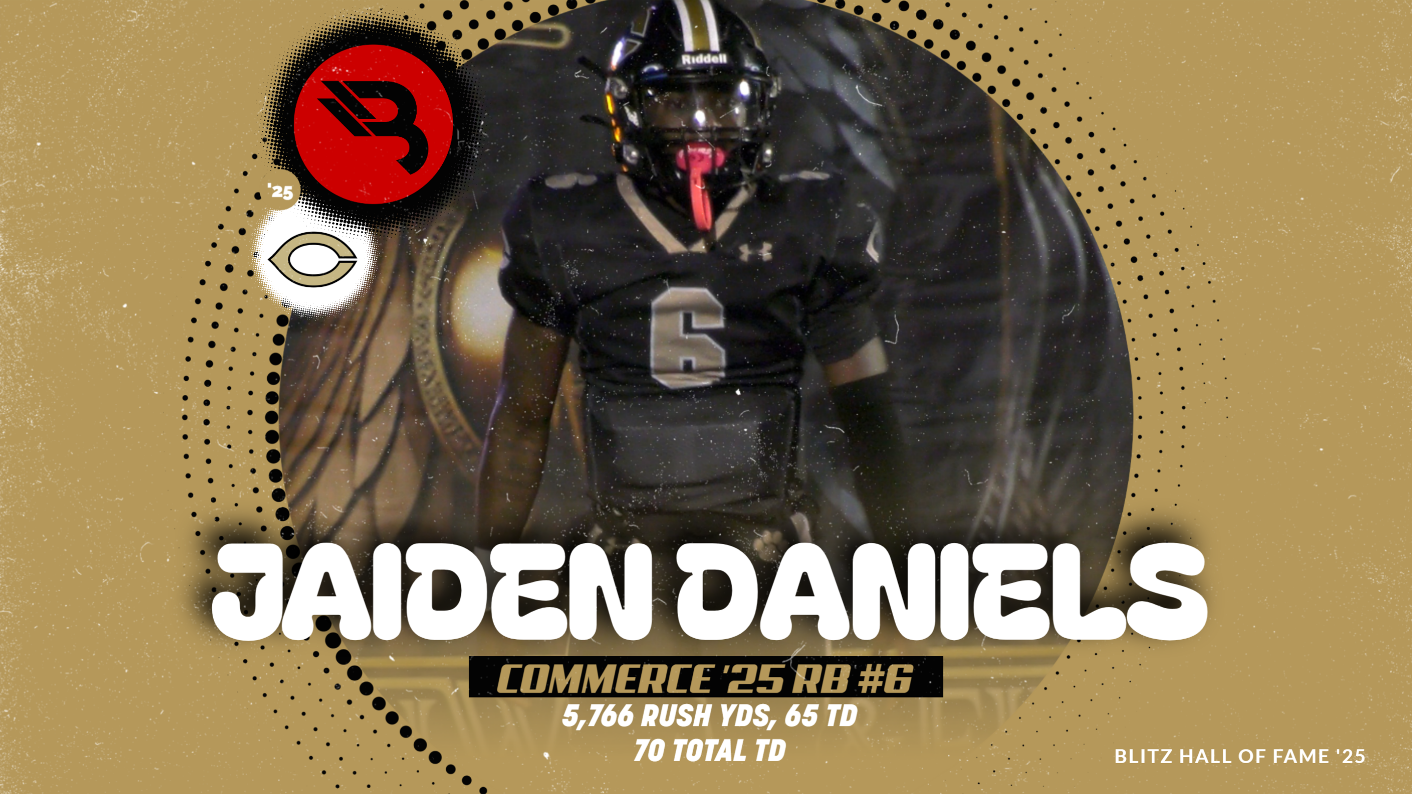 Jaiden Daniels busted onto the scene as a freshman with 1,425 rushing yards and 13 scores! He built on that with a monster sophomore season as well that saw him put up 1,484 rushing yards and 19 TD, both career-highs. He also threw a 70-yd TD that season. Daniels’ junior season was nothing short of spectacular, as he rushed for a career-high 1,965 yards and 23 TD, and had a 31-yd TD pass to boot. His efforts led the Tigers to a Quarterfinals run and a Region Championship! During his senior season, he made the unselfish move to QB. In a signature win against Rabun, he rushed for 217 yards and 3 TD with some jaw-dropping runs that included 2 70-plus yard TDs. Daniels finished his senior year with 870 rush yds and 10 TD, and his total career stat line was 5,766 rushing yards and 65 TD, with 76 receiving yards and 246 passing yards (3 TD). He also had a KR TD and a pick-6 to get 70 career TDs. He went on to play at Eastern Tennessee State University. (415 votes)