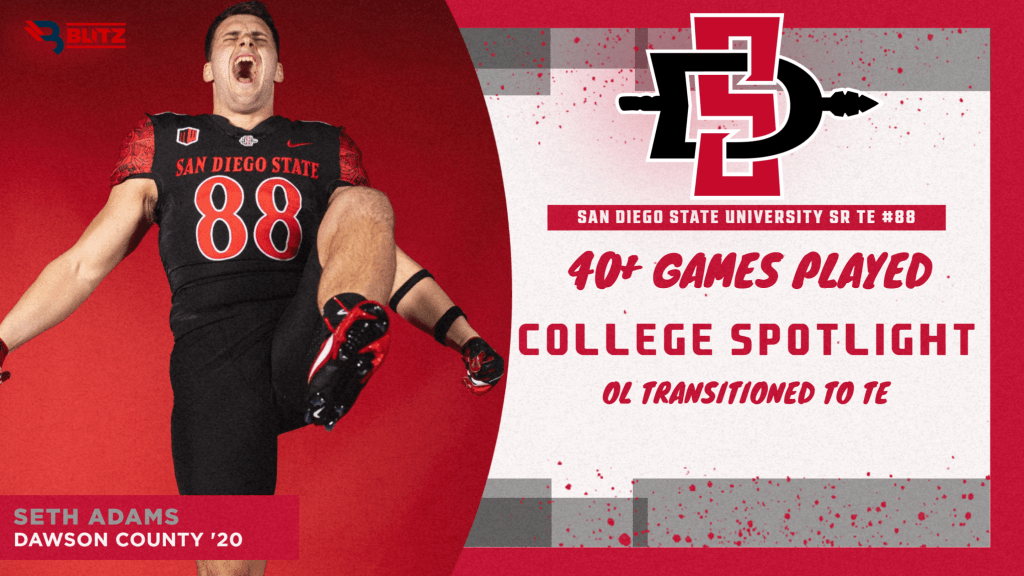 A Dawson County 2020 graduate (during the wild COVID season), Seth Adams has had his fair share of twists and turns. His journey has seen him suit up for four different universities since leaving Dawsonville, but he’s now playing for a high DI level program in San Diego State University.