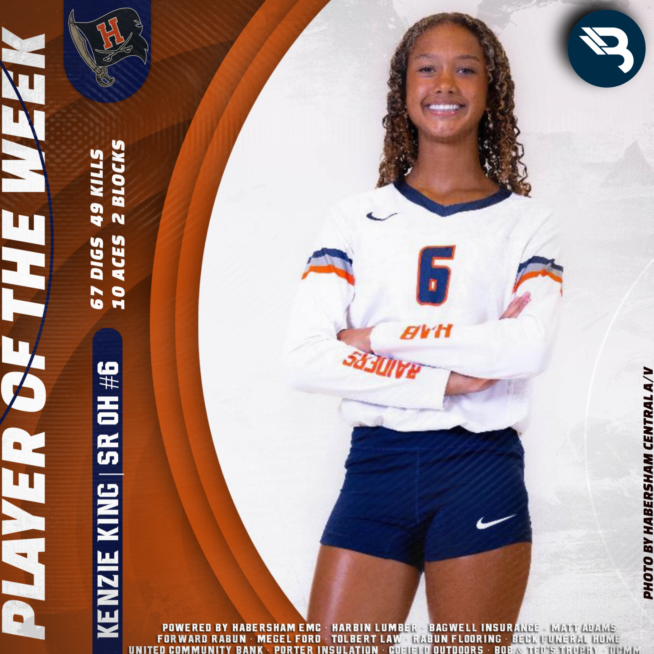 Habersham Central senior outside hitter Kenzie King has had some great performances thus far for the Lady Raiders. She tallied 67 digs, 49 kills, 10 aces, and two blocks last week alone. This is her second POW award.