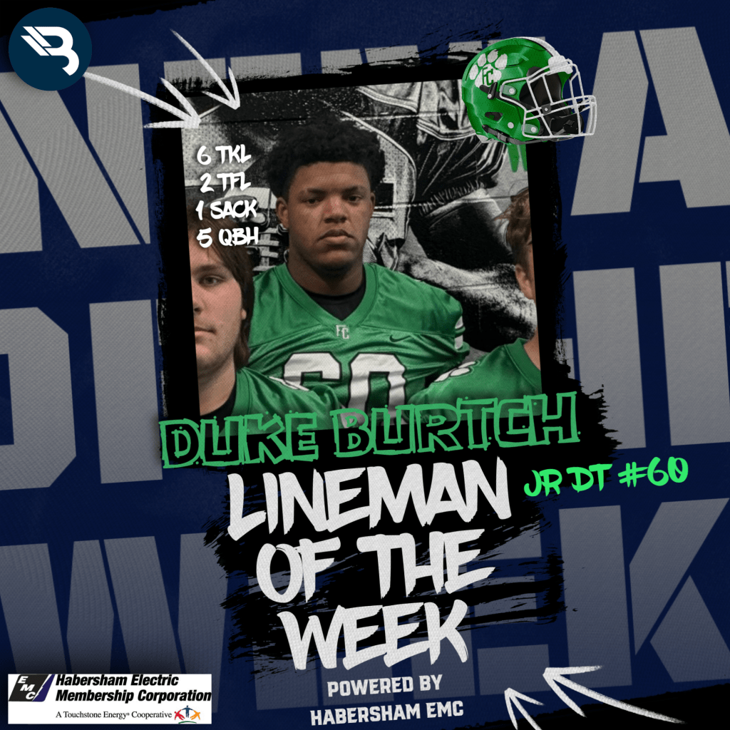 The BLITZ Habersham EMC Linemen of the Week after Week Five are Zach Gordon (Rabun County) for the O-Line and Duke Burtch (Franklin County) for the D-Line.