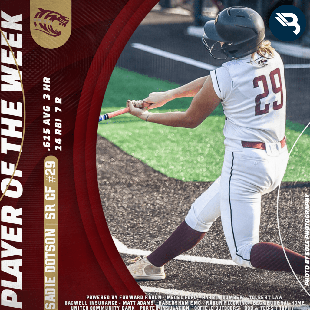 Sadie Dotson continues her sensational season. The Lady Tigers’ senior centerfielder hit .615 overall for Dawson County, with eight hits to her credit. Among those hits includes three homeruns, and she collected an insane 14 RBI, scored seven times, added three doubles and three walks. This is her second career POW award.