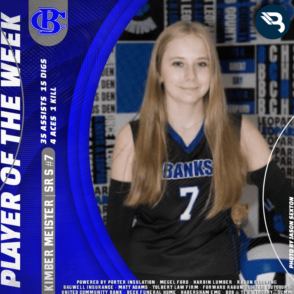 Kimber Meister is putting the finishing touches of her final season at Banks. The Lady Leopards senior setter collected 35 assists, 15 digs, four aces, and a kill last week in one match. This is her first POW award.