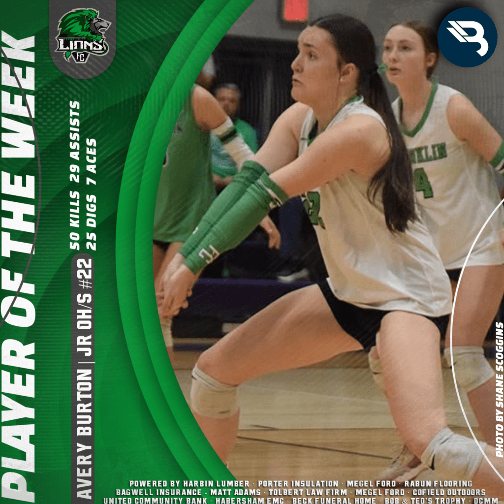 The BLITZ Volleyball Player of the Week is Avery Burton (Franklin County).
