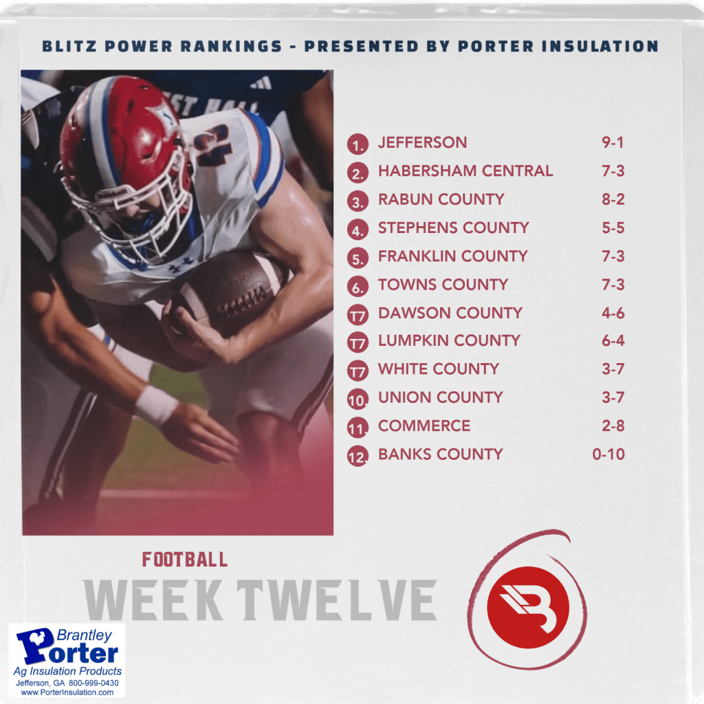 We now reveal the new Power Rankings after the twelfth week, presented by Porter Insulation! This is the final Power Rankings for football this season.