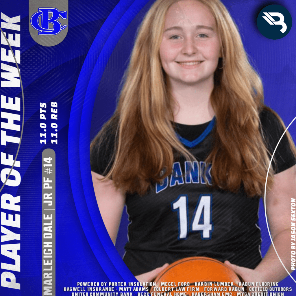 Banks County junior Marleigh Dale takes her second career BLITZ award. The forward averaged 11 points and 11 rebounds per game last week for the Lady Leopards.