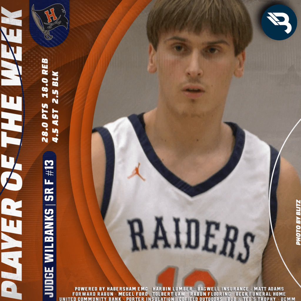Judge Wilbanks was good for 28.0 points and 18.0 rebounds last week for the #10-ranked Raiders. The Habersham Central senior forward even had 38 points against Stephens County, and also averaged 4.5 assists and 2.5 blocks. This is his first POW award.