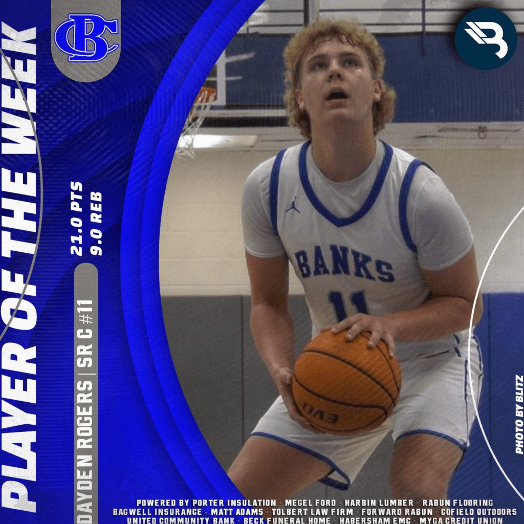 The BLITZ Boys Basketball Players of the Week are Dayden Rogers (Banks), Isiah Patterson (Stephens), and Dustin Barrett (Towns). Rogers won the Fan Vote with 10,161 of the 18,655 total votes. Patterson and Barrett were the BLITZ Picks.