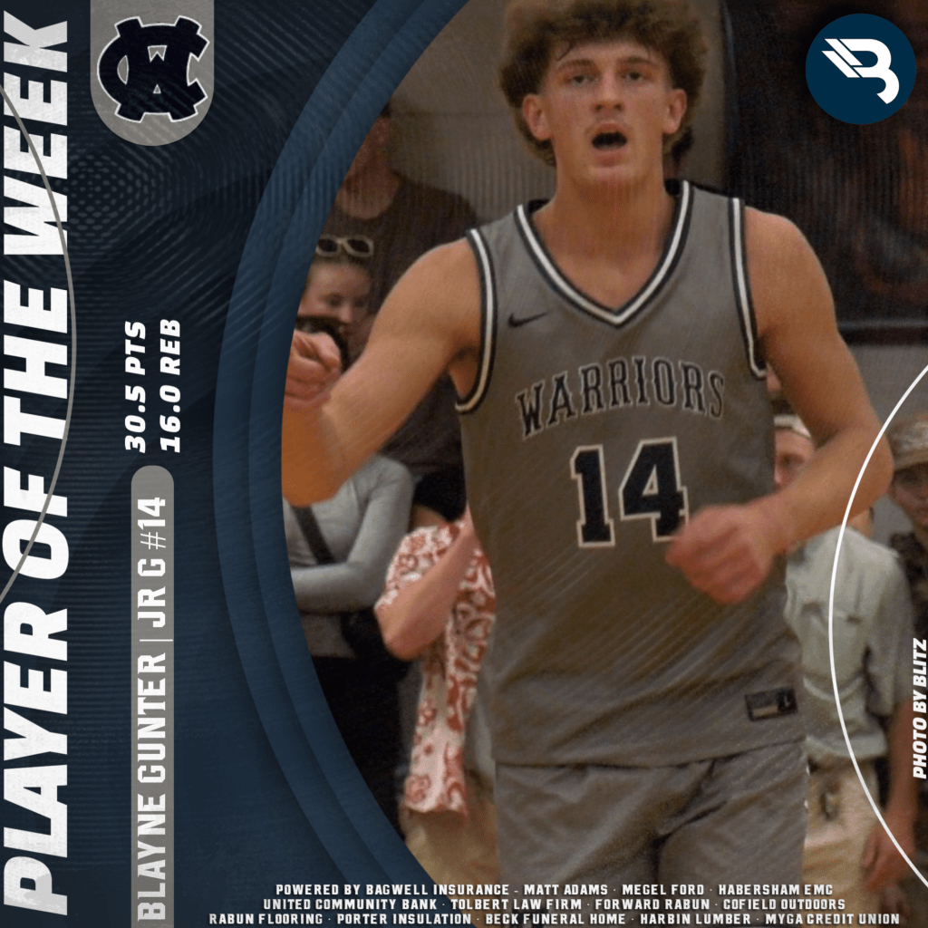 Blayne Gunter is a true scorer. The White County sharp-shooter averaged 30.5 points and 16.0 rebounds last week for the Warriors. The standout junior guard is now a 3-time BLITZ POW winner.